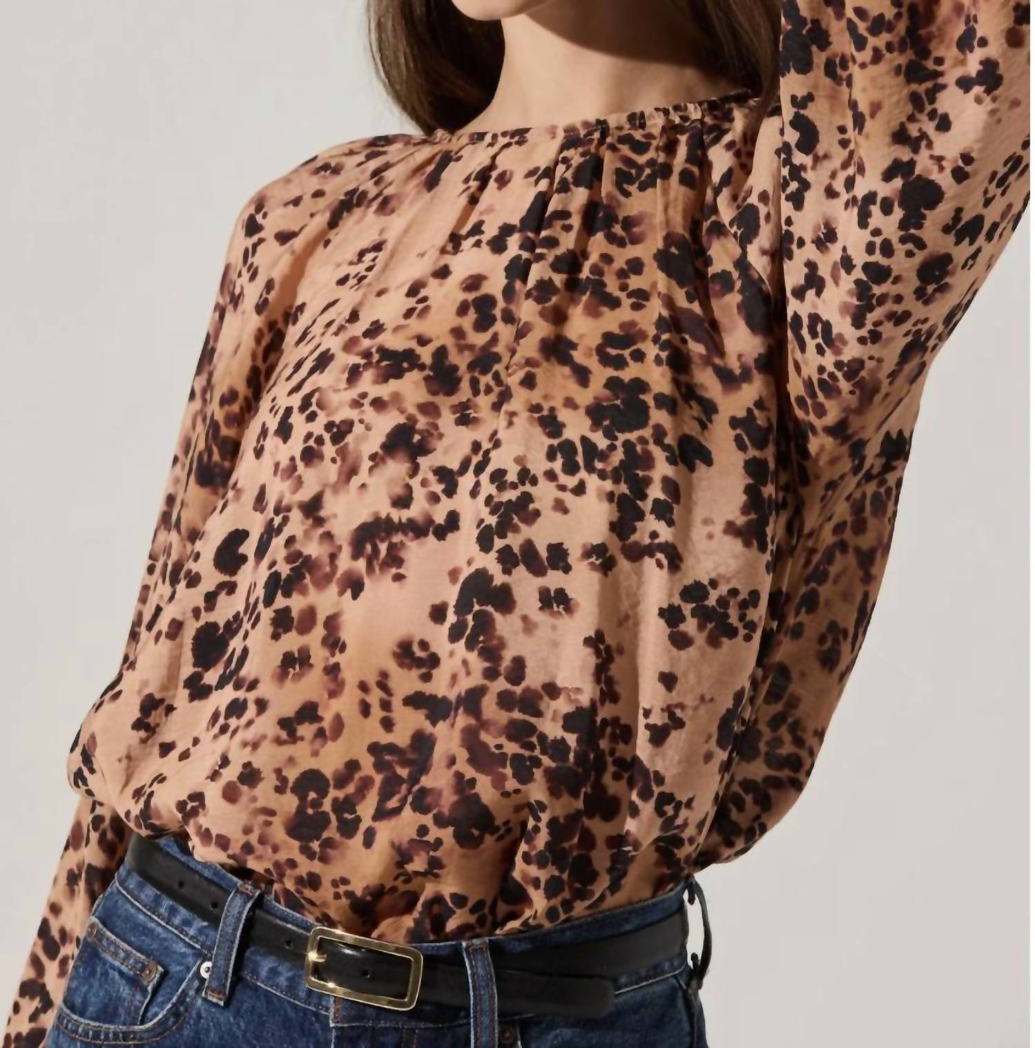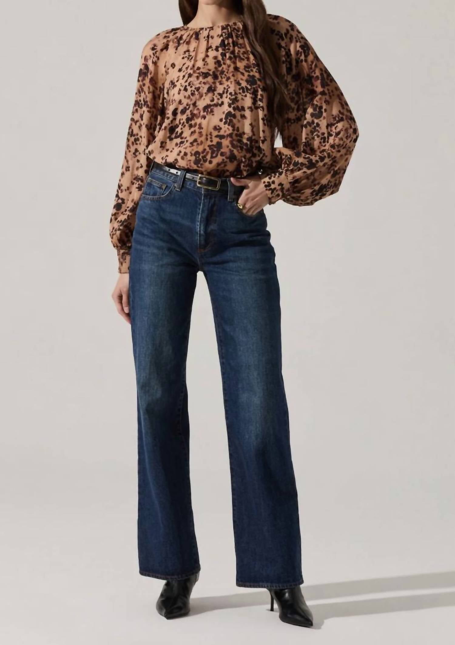 Astr - Reyen Leopard Ballon Sleeve Blouse