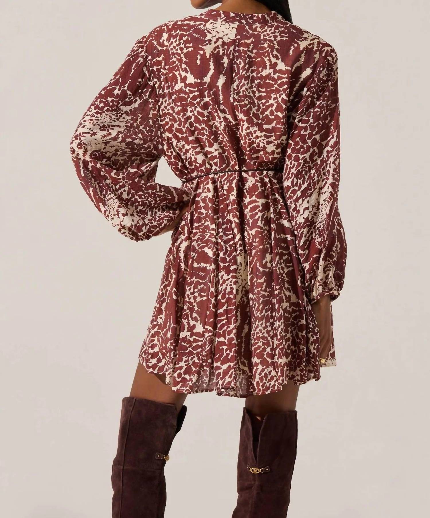 The perfect mini dress for those warmer months. Elevate your wardrobe with the Marisela Belted V-neck Mini Dress by ASTR, perfect for a spring holiday party with its trending Y2K vibe. This rust print A-line silhouette dress boasts long sleeves with button closures at the cuffs and includes a detachable braided faux leather belt for a tailored fit. Crafted from a self composition of 70% Rayon and 30% Polyester with a 100% Rayon lining, it offers a comfortable and stylish look. With a pullover closure and the necessity of dry cleaning, this piece ensures effortless elegance.