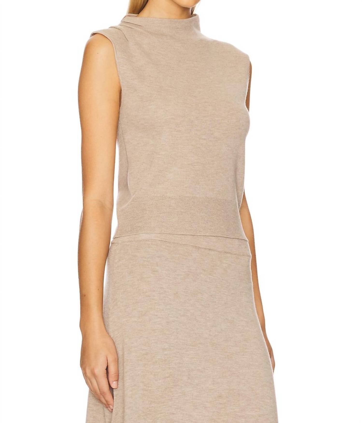 Layer under your favorite sweater or wear tucked into jeans for a perfectly polished winter look. Introducing the Deora Sleeveless Sweater by ASTR, a chic and versatile addition to your wardrobe. Crafted from soft polyester in a sophisticated beige, this sleeveless design features a structured mock neckline and contrasting ribbed hem for a refined look. Originating from China, it's designed to effortlessly complement your fall wardrobe, perfect for travel and holiday ensembles. Closure: Pull-on. Care: Dry clean only.
