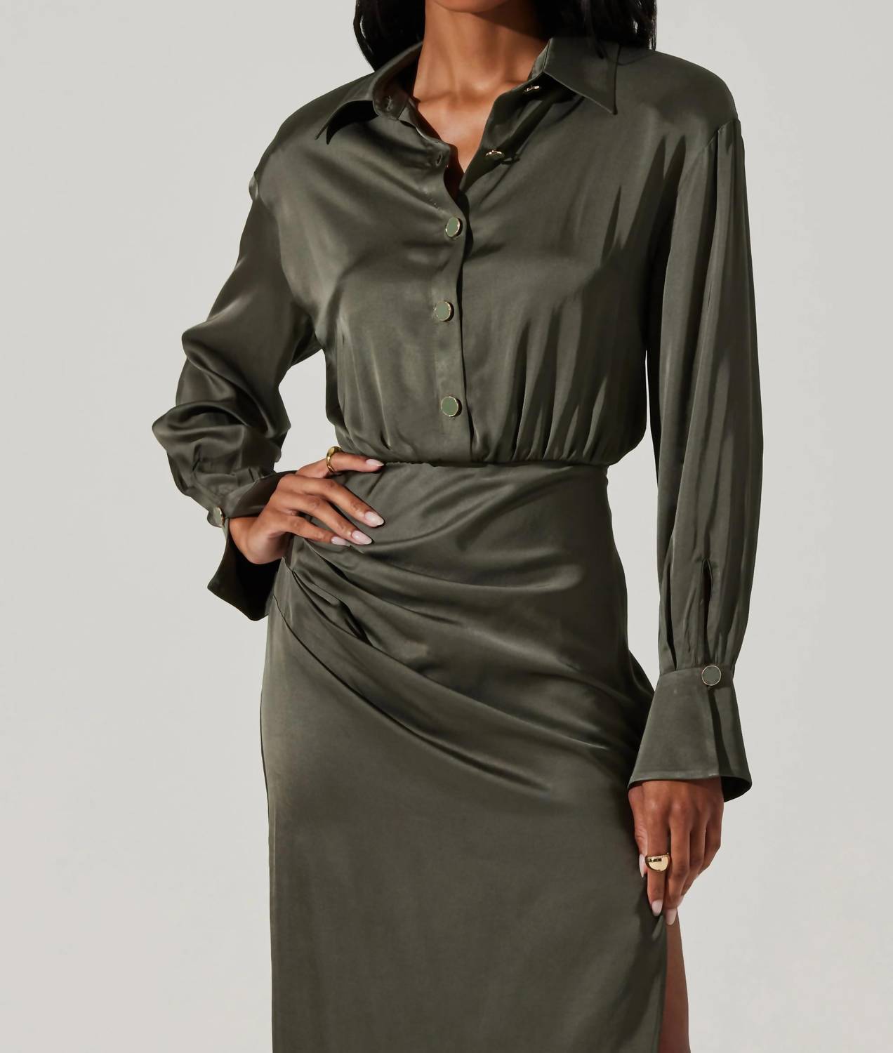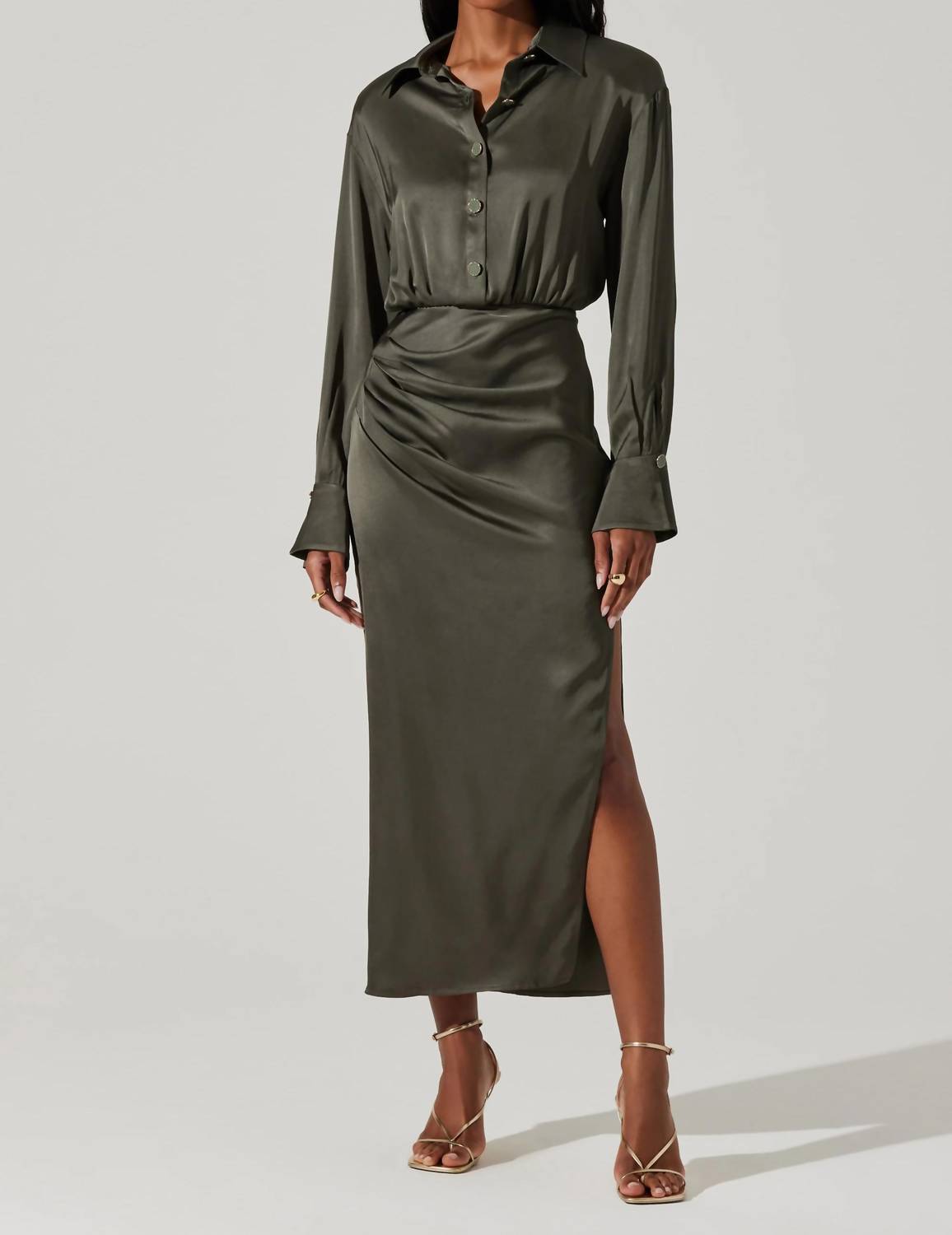 Astr - Elizabello Satin Midi Shirt Dress