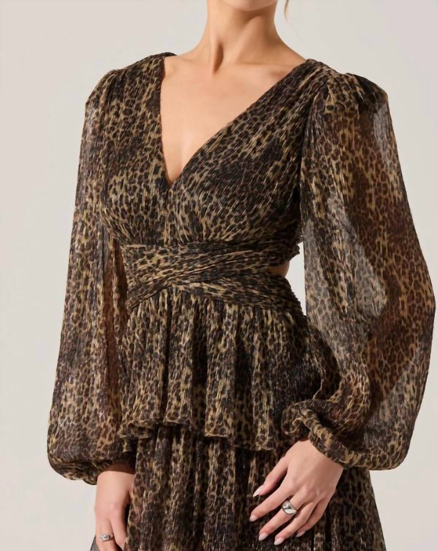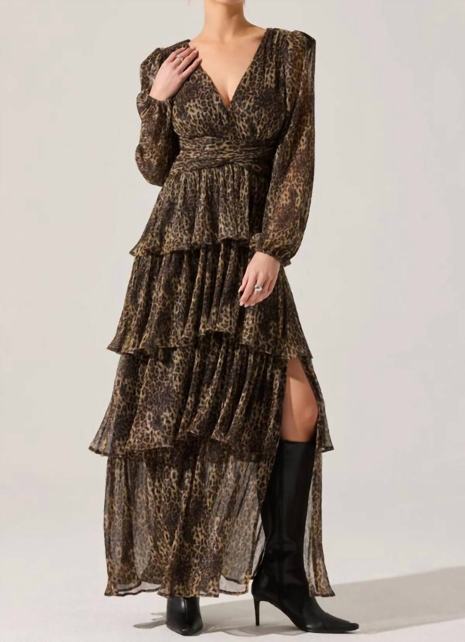 Who doesn't love a good maxi dress? This one you'll be reaching for season after season. Introducing the Anora Dress by ASTR, an elegantly crafted floral tiered maxi dress in Navy Plum Floral. This dress features long blouson sleeves with elastic cuffs and a daring side slit, enhanced by a flattering pleated waist and V-neckline. It's composed of 100% Polyester with a fully lined structure and an adjustable cross strap back for a perfect fit. Closure: Concealed back zip. Care: Dry clean recommended.