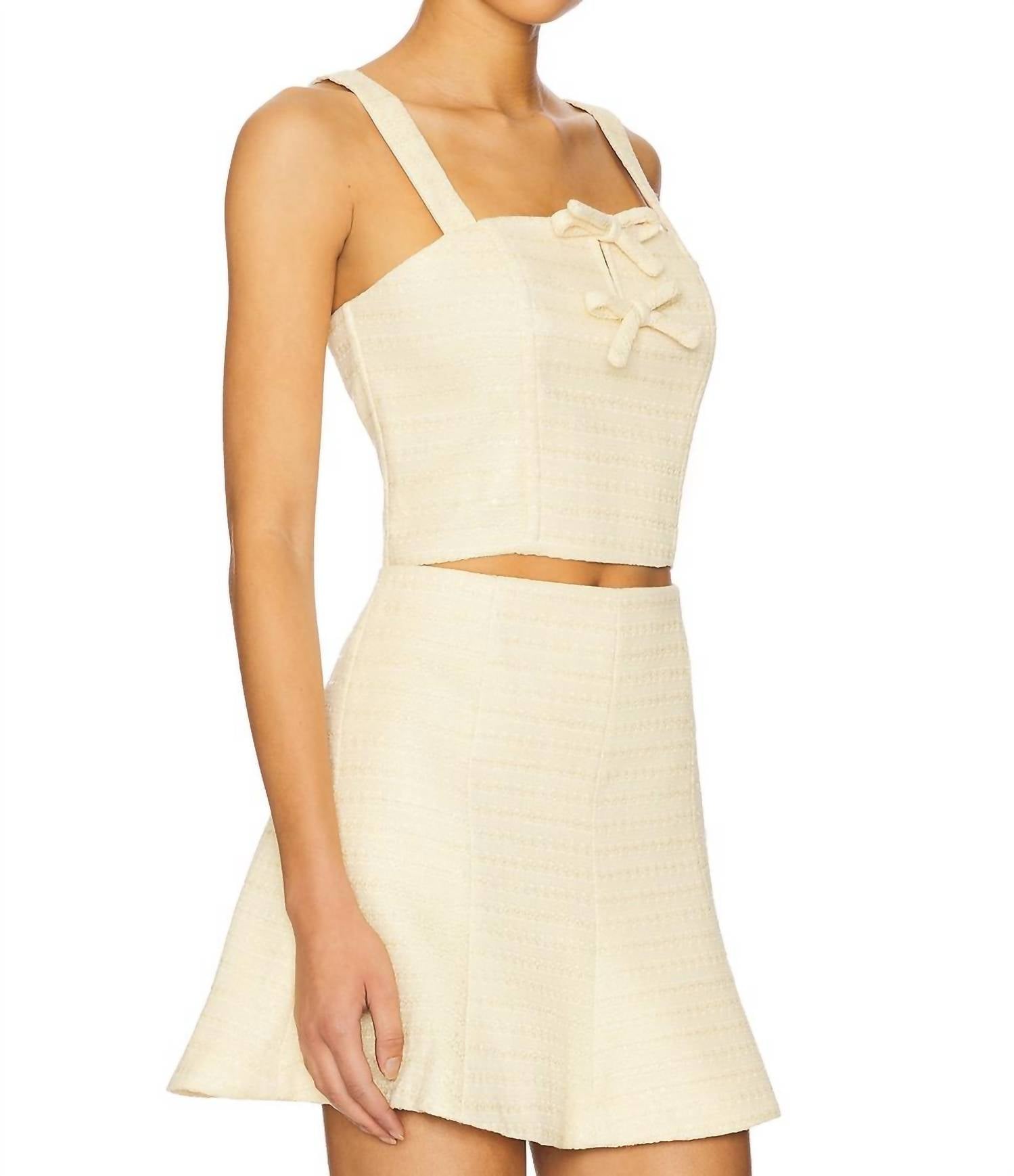 Pair this crop top with your favorite high-waisted jeans or maxi skirt. Introducing the Kiona Tweed Top by ASTR, a chic sleeveless piece in a vibrant yellow perfect for sunny days. Crafted from 100% polyester, it features a textured pattern and a stylish squareneck for a vintage appeal. This cropped top is tailored for a flattering fit and comes with a convenient zip closure. To maintain its pristine look, dry clean only.