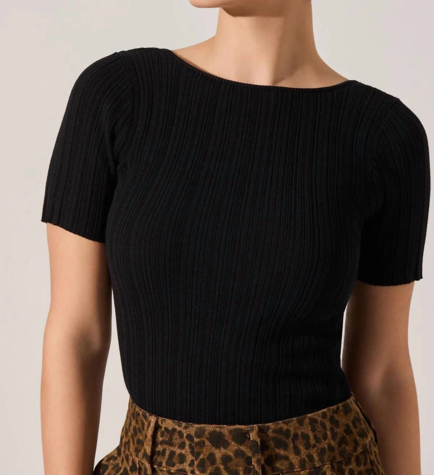 This classic, short sleeve tee will be your go-to staple this season and beyond. Introducing the ASTR NIKOLA Sweater Top, a chic black piece designed to complement any wardrobe. This short sleeve top features a boatneck and is crafted from a premium cotton blend comprising 65% Cotton, 30% Polyester, and 5% Elastane, offering both comfort and style. Enjoy effortless wear with its pull-on design, perfect for versatile styling from casual travel looks to more refined outfits. Easy to maintain, just machine wash and tumble dry for care-free wear.