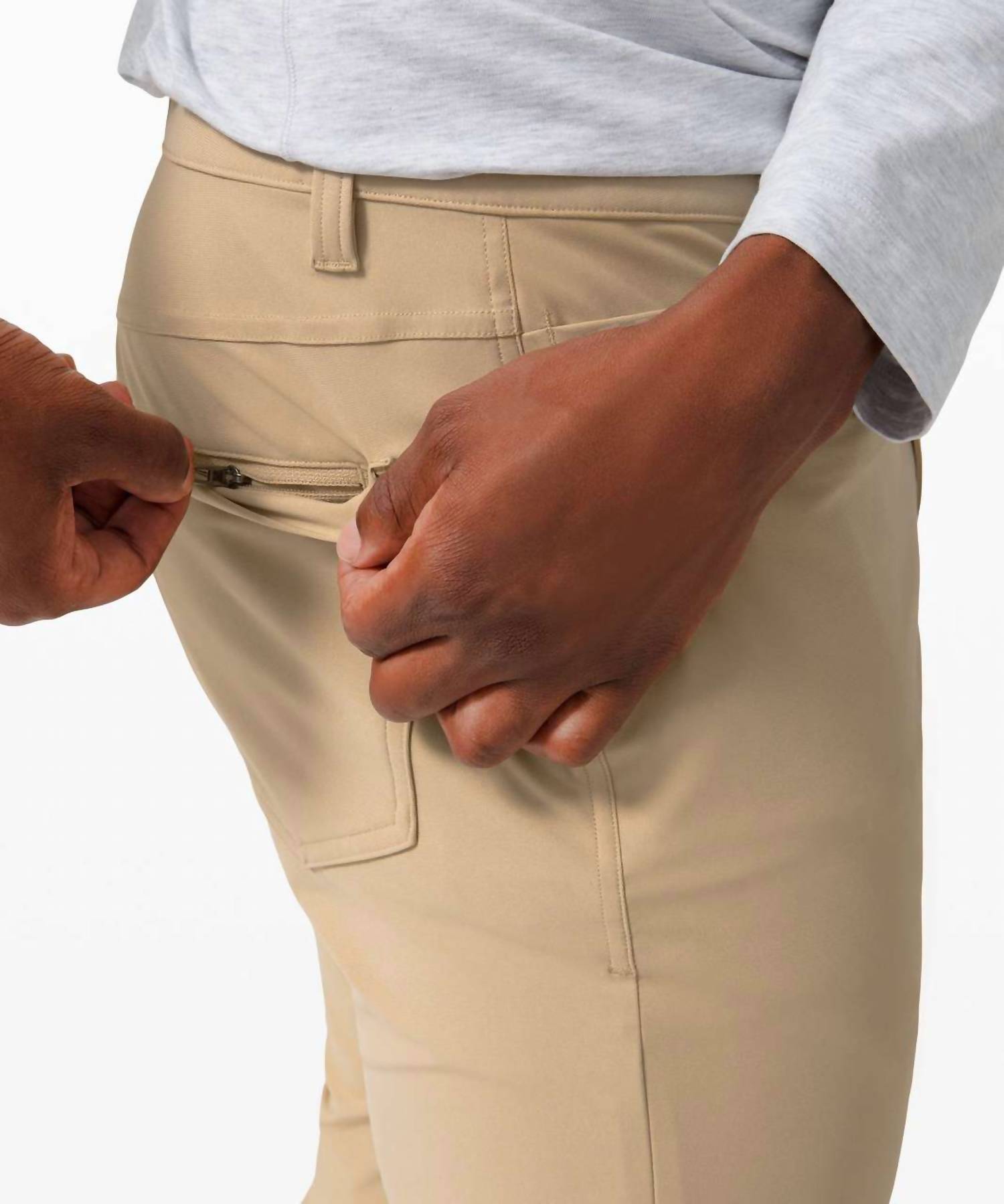 The Lululemon ABC Slim-fit 5 Pocket Pant in Trench offers a sleek, minimalist style perfect for a summer dinner party. Designed for men, these chinos feature a solid pattern with a slim fit and straight leg for a polished look. The pant includes five practical pockets and a button closure, enhancing functionality while maintaining a sophisticated appearance. Country of origin and specific care instructions are not provided for this stylish piece.