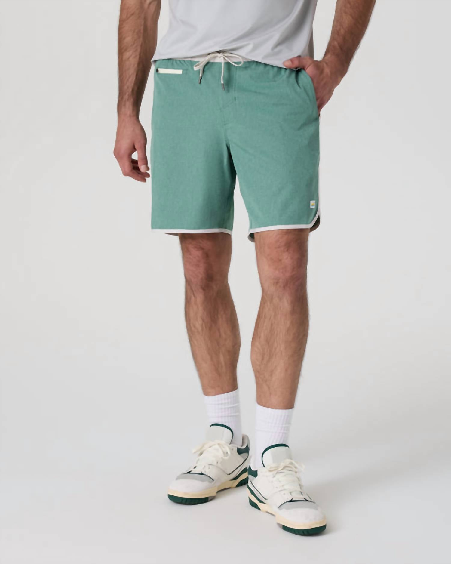 Discover the Banks Classic Fit Short by Vuori, the perfect blend of style and performance for your athletic needs. Crafted from 45% recycled polyester, 45% polyester, and 10% elastane, these shorts offer durability and flexibility. Designed in a solid navy linen texture with a convenient pull-on closure, they provide a classic fit with a 5-inch inseam. Care instructions include machine wash and tumble dry, ensuring easy maintenance.