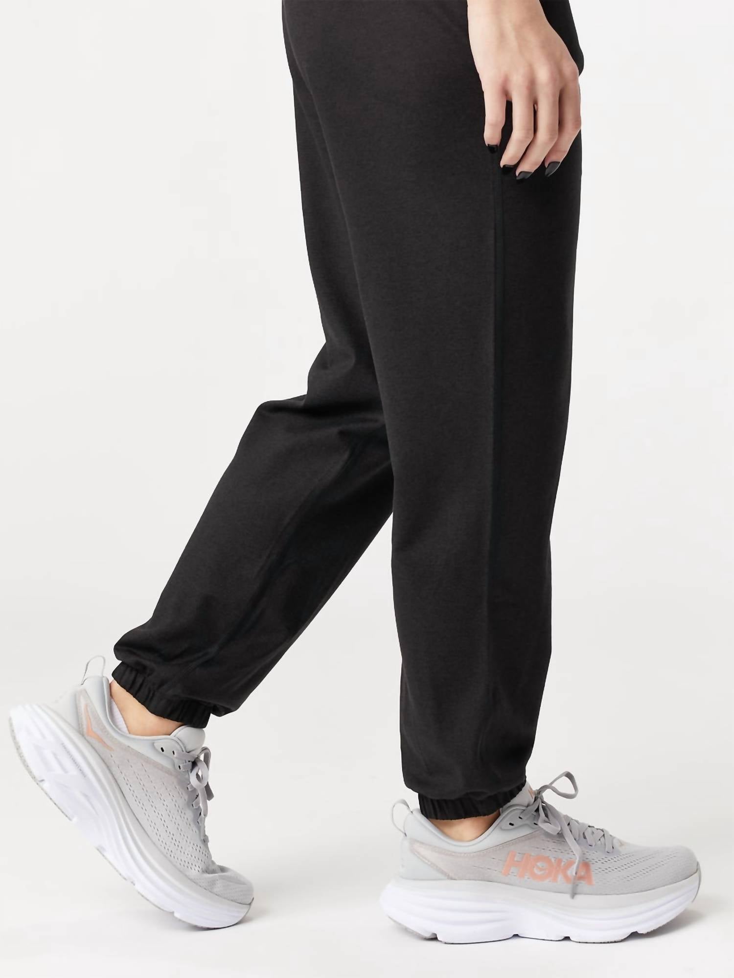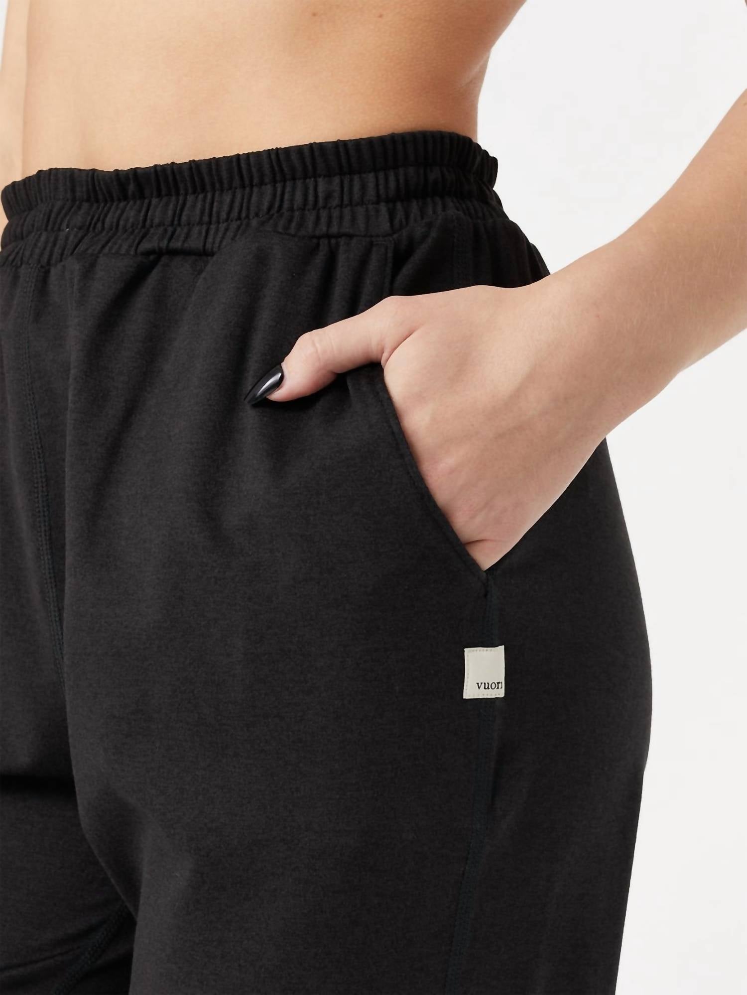 The perfect pant for running around town and looking cool while doing it. Discover optimal comfort with the Women's Boyfriend Sweatpants by Vuori, perfect for a relaxed monochrome look. Crafted from 89% recycled polyester and 11% elastane, these high-rise, tapered leg sweatpants feature a pull-on closure and a solid black heather hue. Designed for a relaxed fit, it includes practical pockets for convenience. Care instructions include machine washing and tumble drying for easy maintenance.