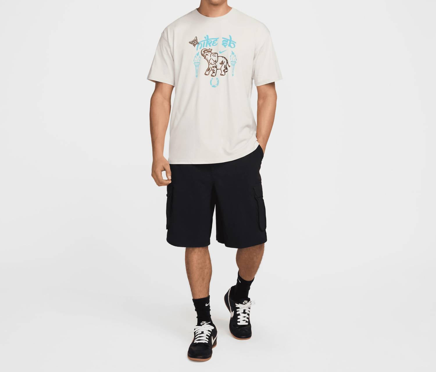The Nike SB Max90 OC Elephant Shirt in Lt Bone is a standout short sleeve piece perfect for streetwear lovers. Made from 100% cotton, this graphic tee combines comfort with a slightly structured feel for daily wear. Its ribbed collar and dropped shoulders offer a roomy fit, ideal for casual outings or game day. This pull-on garment is machine washable and imported, ensuring both style and ease of care.