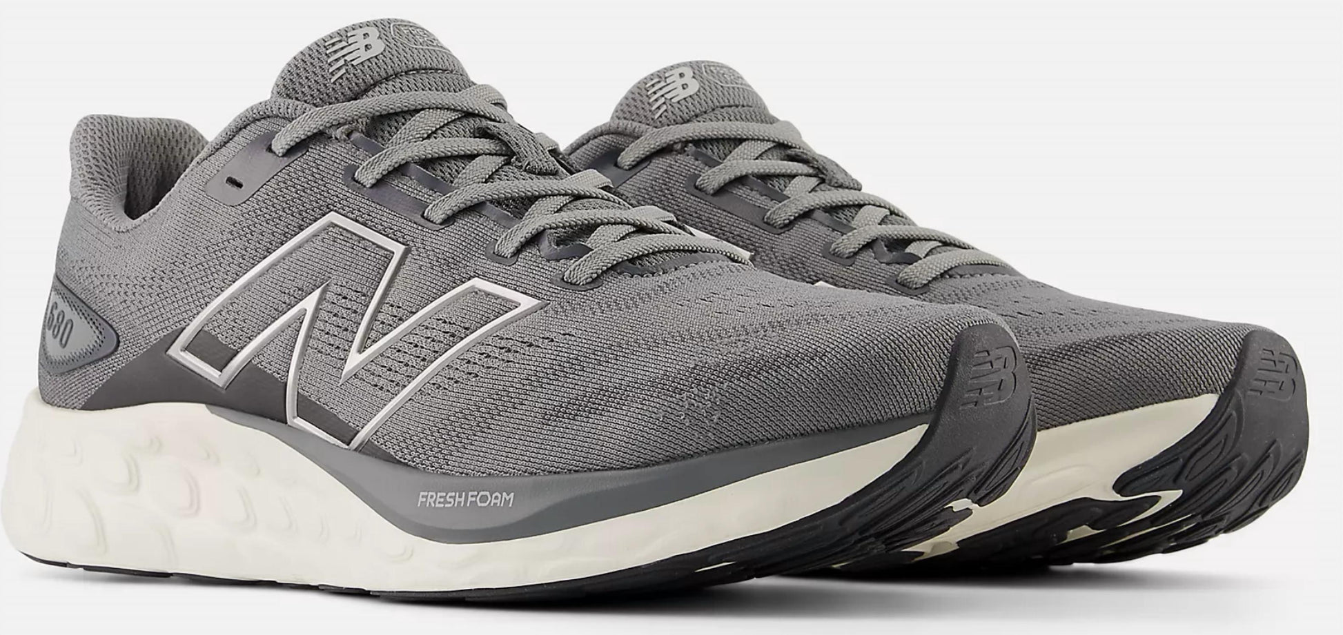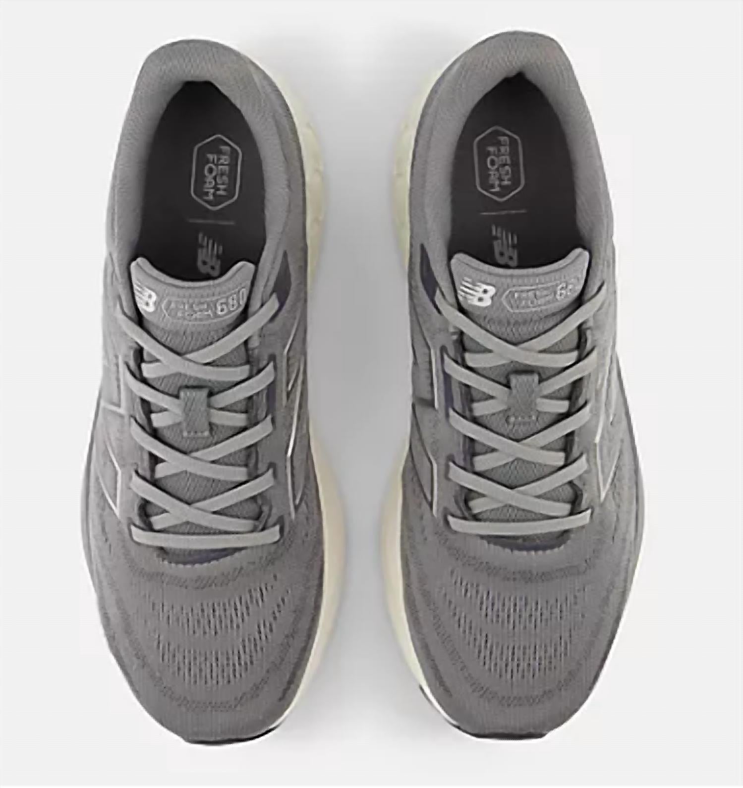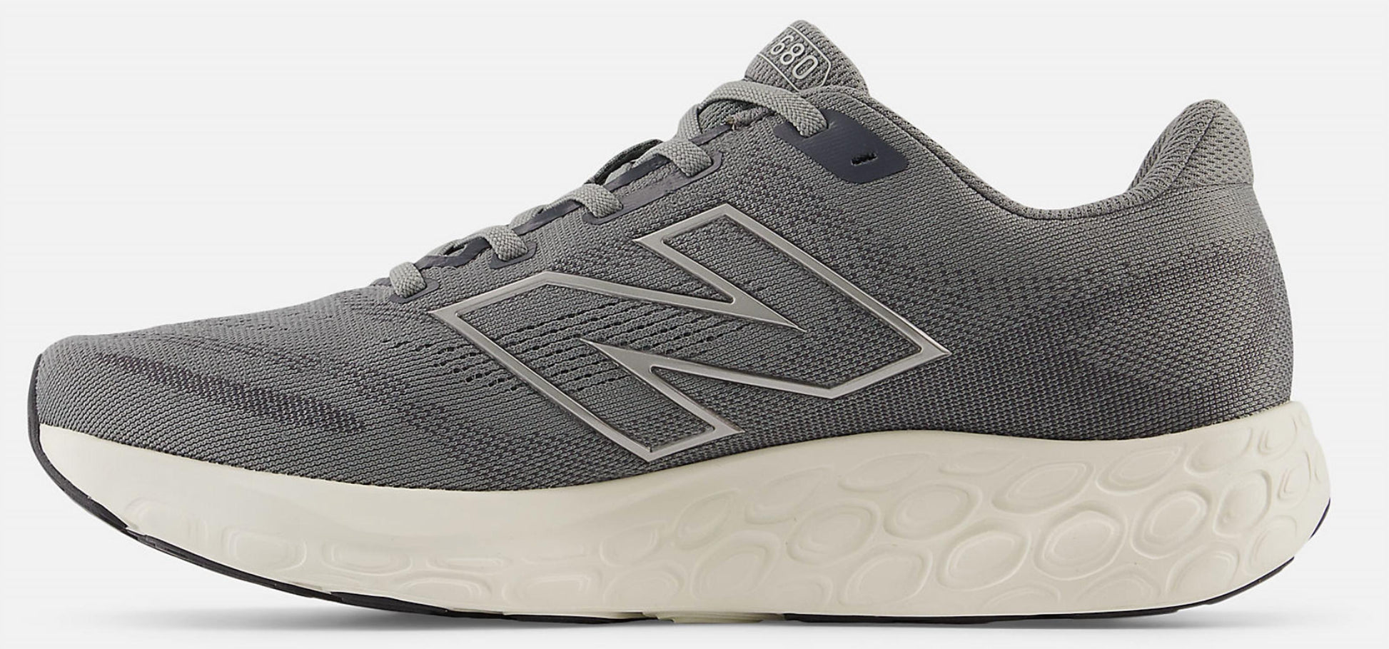 Cute, functional, and comfortable. These sneakers check all the boxes. Meet your new go-to sneakers, the Men's New Balance Fresh Foam 680v8 in Harbor Grey and Dark Silver Metallic. These sleek, round-toe sneakers feature no-sew construction and an upper made from precision-engineered knit material for unparalleled comfort and ventilation. Engineered for superior performance, they boast a Fresh Foam midsole with a bio-based content of roughly 3% for lightweight cushioning, and a lace closure ensures a secure fit. With an integrated rubber outsole, each step is cushioned, making them ideal for both running miles and completing everyday errands. The 268 grams (9.5 oz) design is complemented by an 8 mm drop for an ultra-comfortable ride.
