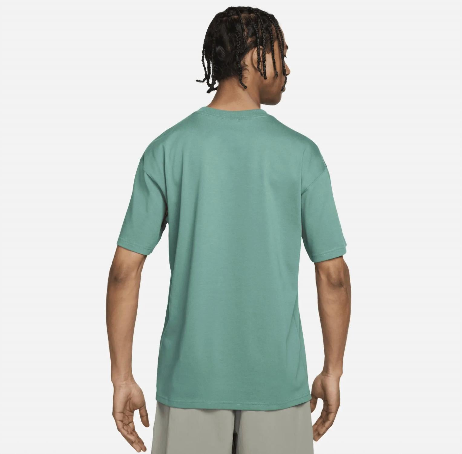 Embrace the outdoors with the Men's ACG Lungs Shirt by Nike, featuring classic short sleeves in a breathable design ideal for spring adventures. Crafted from a sustainable blend of 63% recycled polyester and 37% organic cotton, this green tee ensures comfort with its lightweight jersey fabric that wicks moisture away. The pull-on closure and roomy fit add to its streetwear vibe, while the graphic lung-shaped detail and ACG-inspired embroidered accents enhance its unique appeal. Perfect for vacations, this imported shirt encourages you to enjoy nature in both style and sustainability.