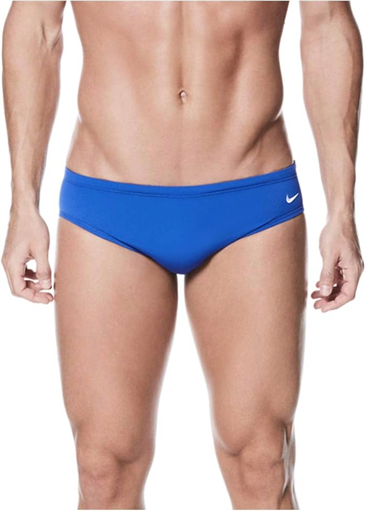 Introducing the Core Solid Brief by NIKE, designed for the modern man with a focus on performance and style. These Royal Blue briefs feature a low-rise fit with an interior drawcord for a snug, adjustable fit, complemented by durable, chlorine-resistant 100% polyester material for superior color retention. The fully lined interior ensures comfort, made from 90% polyester and 10% spandex. Care: Hand wash, line dry. Style Number: NESS4030. Ideal for beach days and capturing the athleisure trend.
