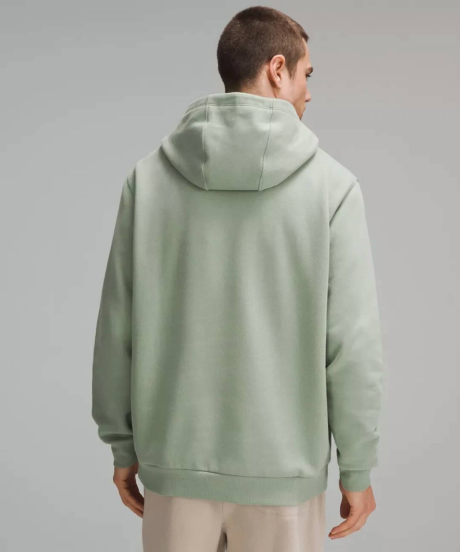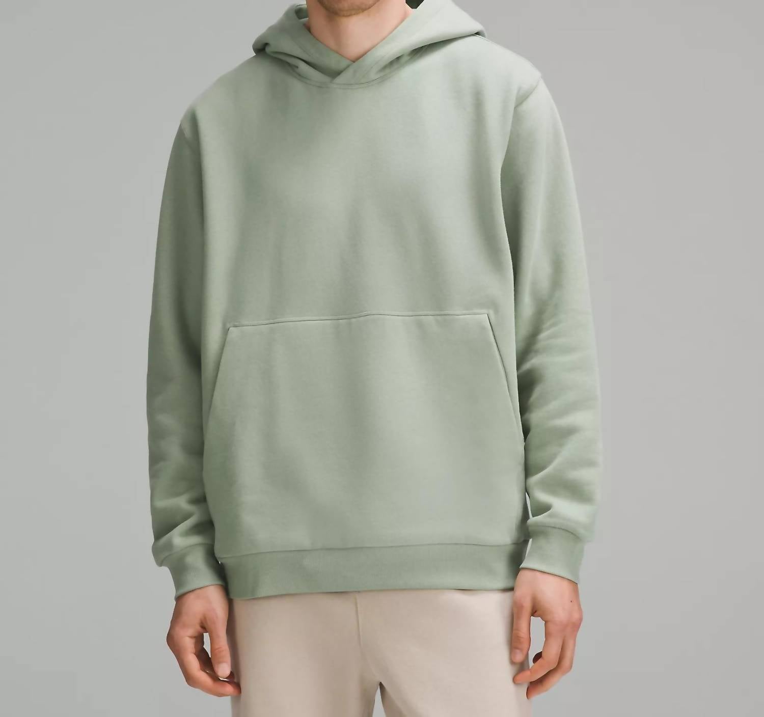 Introducing the Steady State Pullover Hoodie by lululemon, a perfect blend of comfort and style in the unique Palm Court color. Crafted from a cotton blend, this long-sleeve hoodie is designed with a relaxed fit and features a hooded neckline for ultimate coziness. The kangaroo pocket is thoughtfully equipped with hidden phone and coin sleeves, enhancing its practicality. Closure: Pull on. Care: Machine wash and tumble dry.