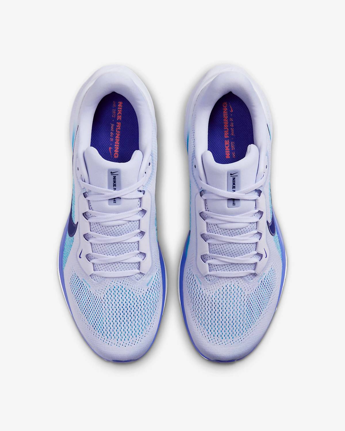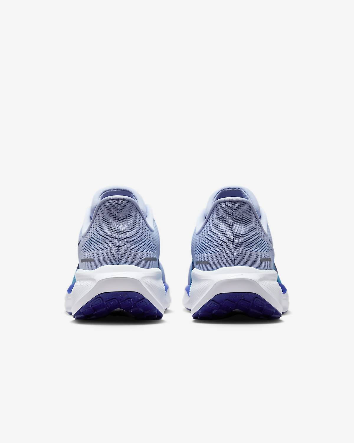 Experience the energizing stride of the Men's Pegasus 41 Road Running Shoes by NIKE. Expertly crafted with dual Air Zoom units and a ReactX foam midsole, these shoes promise an invigorated and lightweight run, ideal for everyday road running. The engineered mesh upper, colored in an eye-catching Ghost, Football Grey, Deep Night, and Blue Void, ensures breathability and reduced weight. Proudly made in Vietnam, these athletic shoes feature a round toe design, perfect for game day and summer athleisure trends.