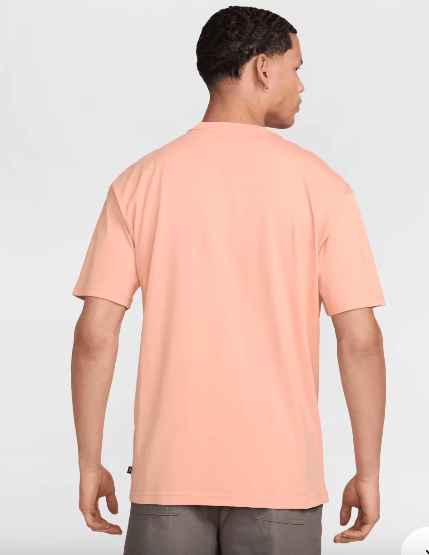 Introducing the Nike SB Max90 Dog Skate T-Shirt in Apricot Agate, a must-have for streetwear enthusiasts. This men's tee features short sleeves and a laid-back design with dropped shoulders and a roomy fit for ultimate ease of movement. Crafted from 100% cotton, it provides midweight comfort and a slightly structured feel. Made in an eye-catching solid color, this shirt features a ribbed collar and is machine washable for effortless care.