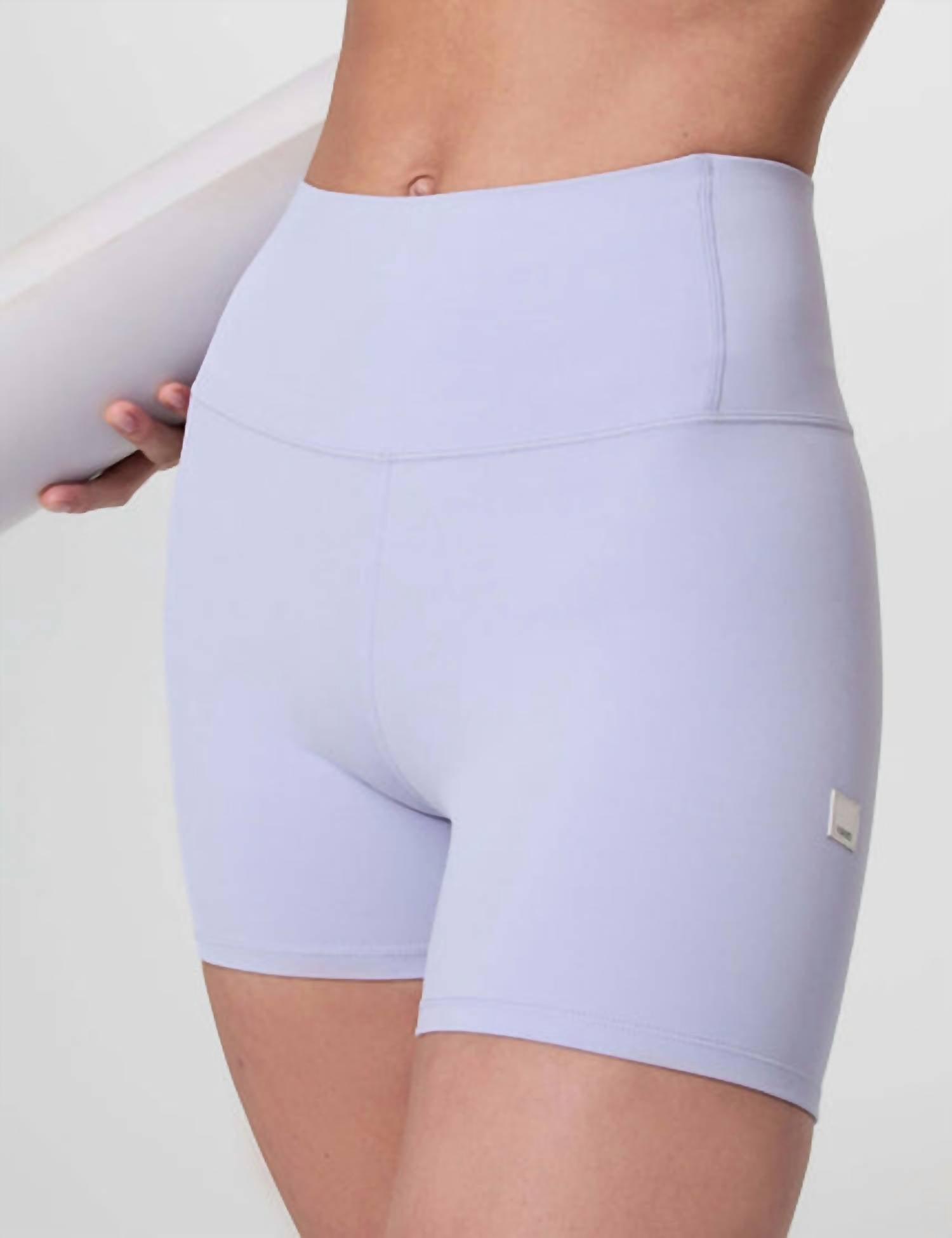 light weight and beyond comfortable, these athletic shorts are perfect for those warm weather days. Experience ultimate comfort with the Vuori All The Feels Short in Lavender Mist, ideally designed for women who embrace an active lifestyle. With a high-rise and four-way stretch, these athletic shorts feature a 4-inch inseam and are crafted from 75% polyamide and 25% elastane, providing both breathability and support. A convenient pull-on style includes a side waistband pocket for small essentials, making it perfect for yoga, pilates, or casual outings. These moisture-wicking shorts are machine washable and can be safely tumble dried, ensuring effortless care for your summer athleisure collection.