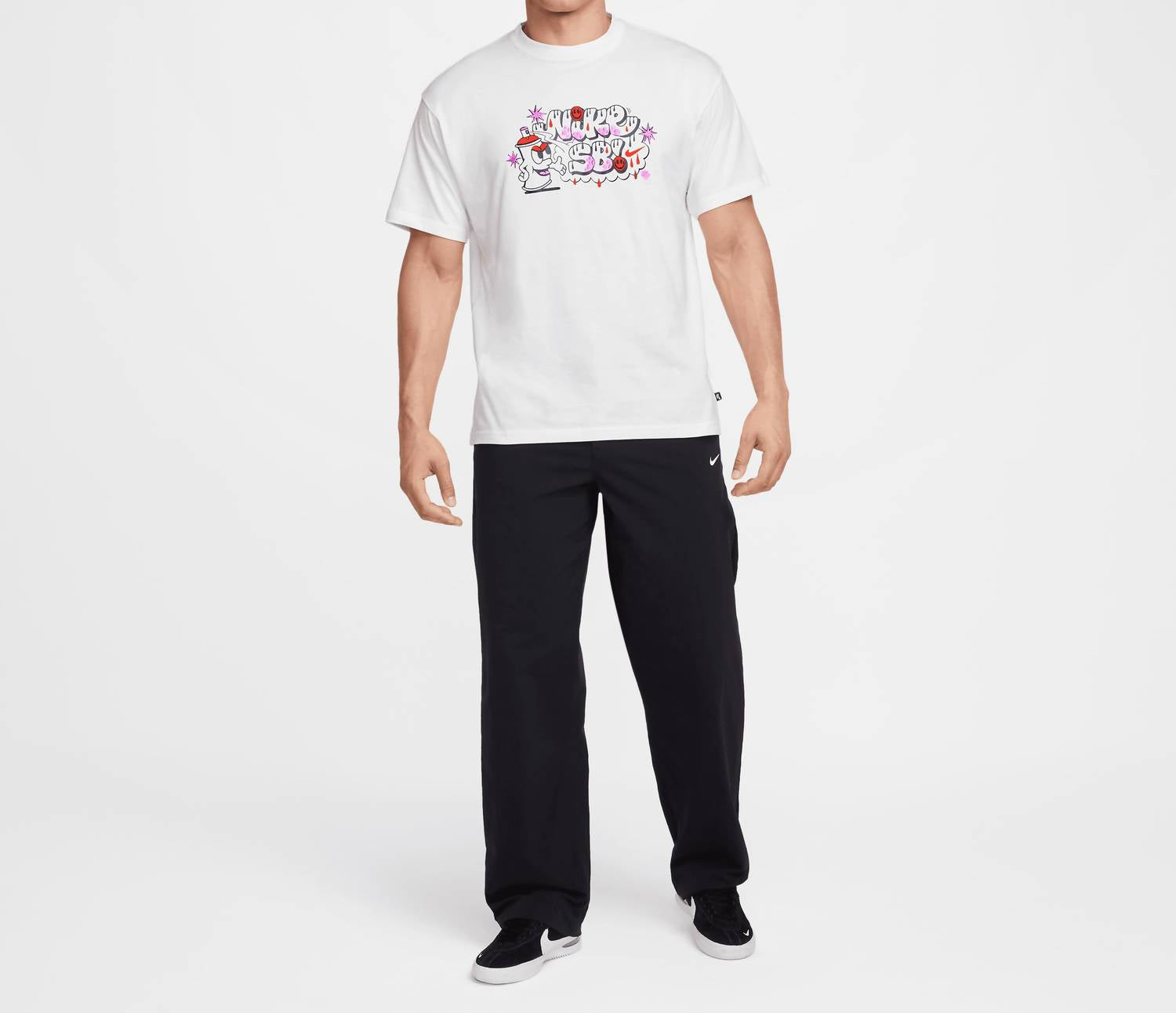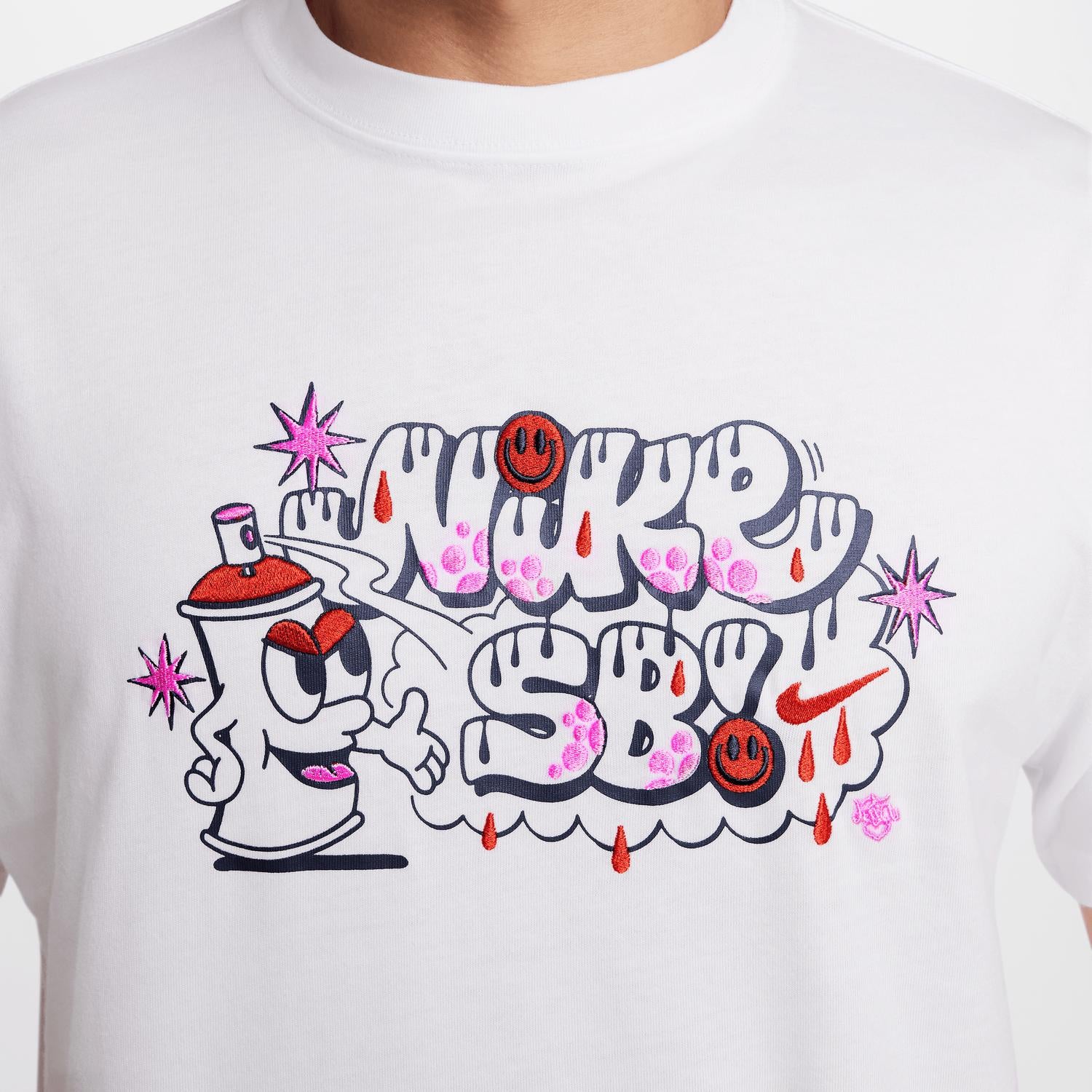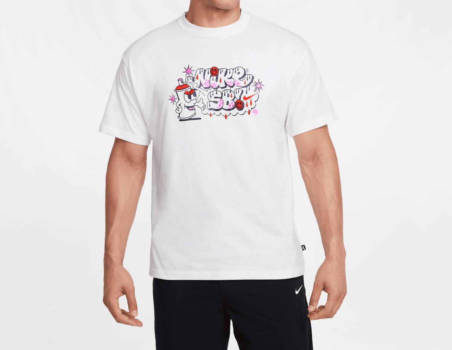 Dive into effortless summer style with the NIKE SB Max90 Spray Can Shirt in crisp white. Designed for relaxed comfort, it features short sleeves and a roomy fit, with dropped shoulders enhancing its laid-back vibe. Made from 100% cotton, this graphic tee is great for casual wear and stays soft through all your movements. Closure: Pull on. Care: Machine wash. Imported.
