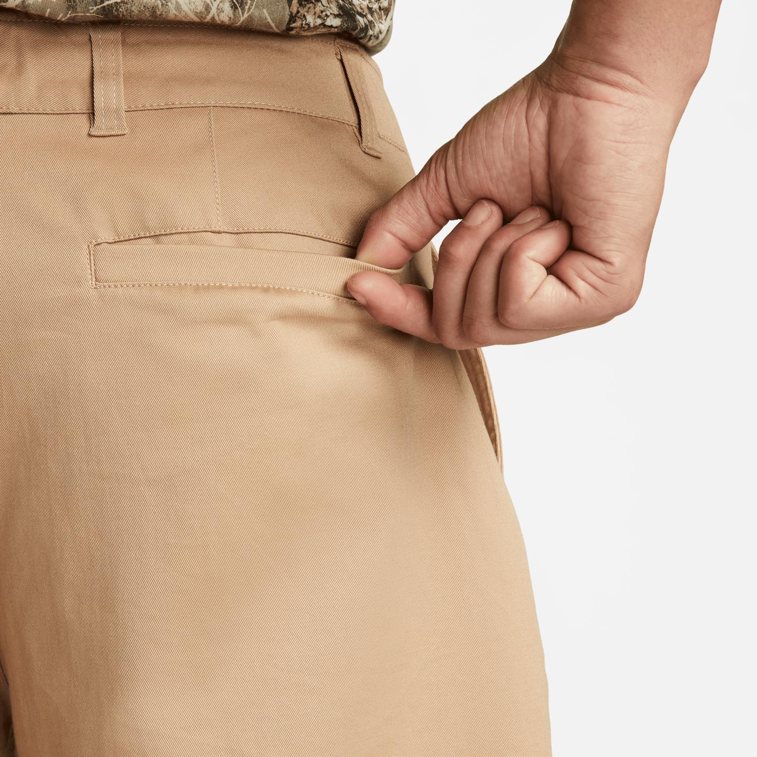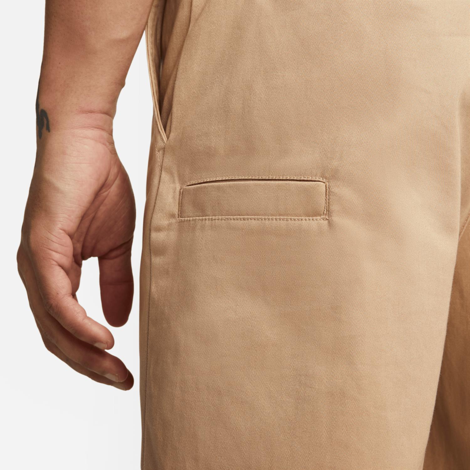 Introducing the Nike SB El Chino Skate Shorts in Hemp, designed for both dynamic skate sessions and leisurely lounging. These men's shorts feature a solid pattern with a relaxed fit, perfect for everyday comfort. They are crafted from a soft and durable blend of 98% cotton and 2% elastane for the body, with pockets lined with 87% polyester and 13% cotton. Closure type includes a zippered fly with button closure. Care instructions: machine wash and lay flat to dry. Made for streetwear enthusiasts, these shorts are ideal for travel and are perfect for spring, particularly St. Patrick's Day celebrations.