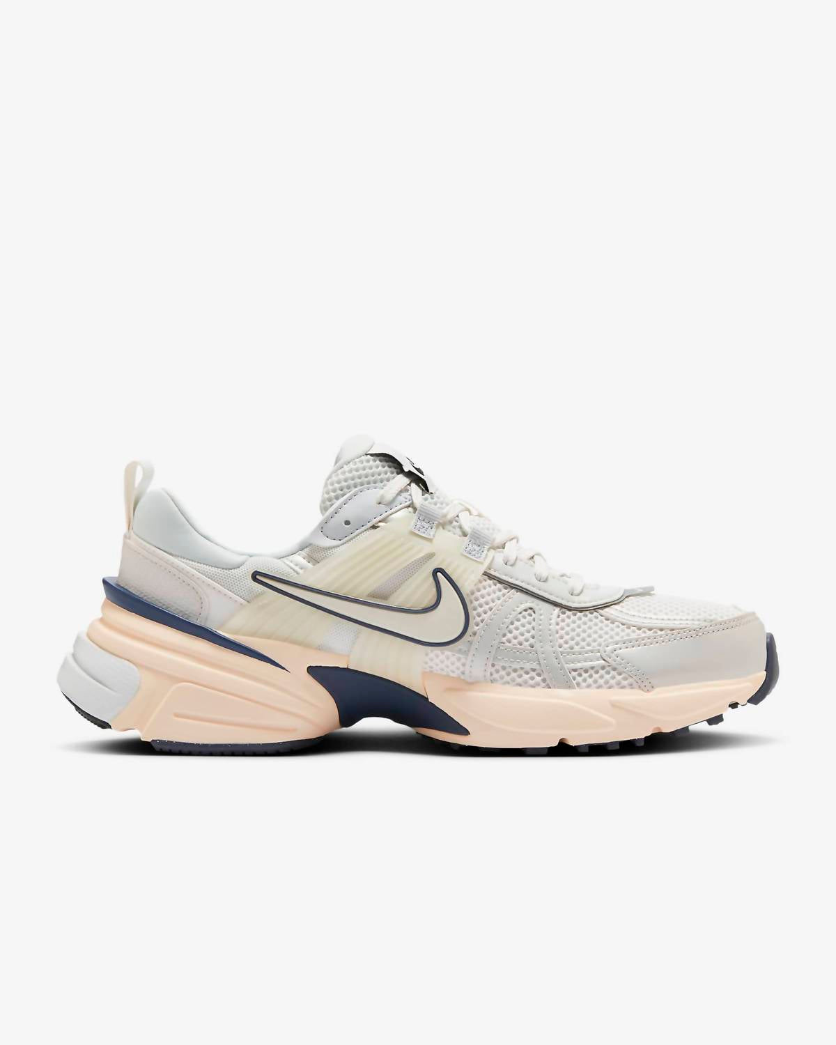When fashion and function come together seamlessly. Step into the future with the NIKE Women's V2K Run Sneaker, a retro-inspired design in Platinum Tint. These women's sneakers boast a lightweight mesh upper for breathability, a dual-density foam midsole for a comfy ride, and translucent plastic accents inspired by the Nike Vomero 5. The durable rubber outsole ensures solid traction, while the chunky heel adds an extra touch of vintage flair. Ideal for medium width and featuring a round toe, this sneaker combines style and comfort seamlessly.