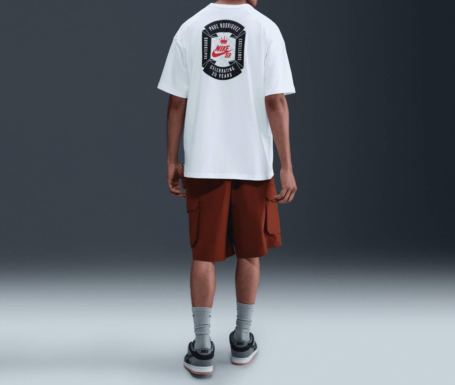 This classic, short sleeve tee will be your go-to staple this season and beyond. Introducing the Nike SB Paul Rodriguez Max Ninety Top, a stylish addition to any wardrobe. This short sleeve tee, featuring a vibrant graphic pattern, is crafted from 100% heavyweight cotton for a thick, durable feel. Designed with a pull-on closure and a classic crewneck, the tee is perfect for spring streetwear occasions. Imported with a ribbed collar, it promises comfort and ease of movement.