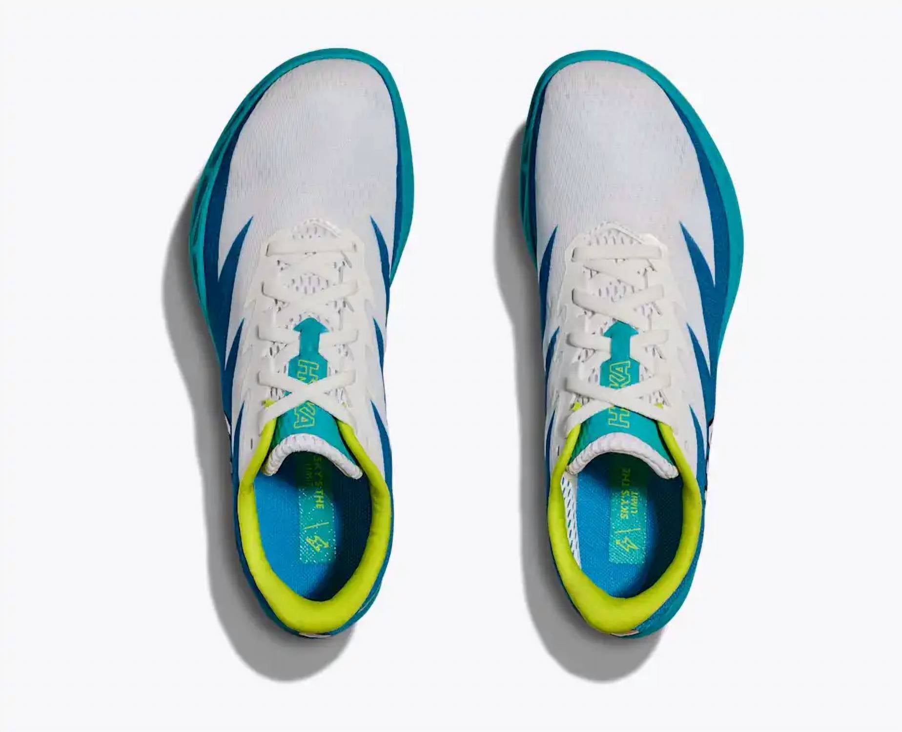 Introducing the Men's Crescendo MD Running Shoes by Hoka, designed for speed and comfort with a 6-pin spike plate and a race-ready single-layer mesh upper. Featuring more cushioning and midsole foam, these athletic shoes boast the thickest stack height you'll find on the track, making them perfect for both beginners and seasoned runners. Color: Ceramic/Diva Blue. Ideal for fitness, workouts, and summer athleisure trends.