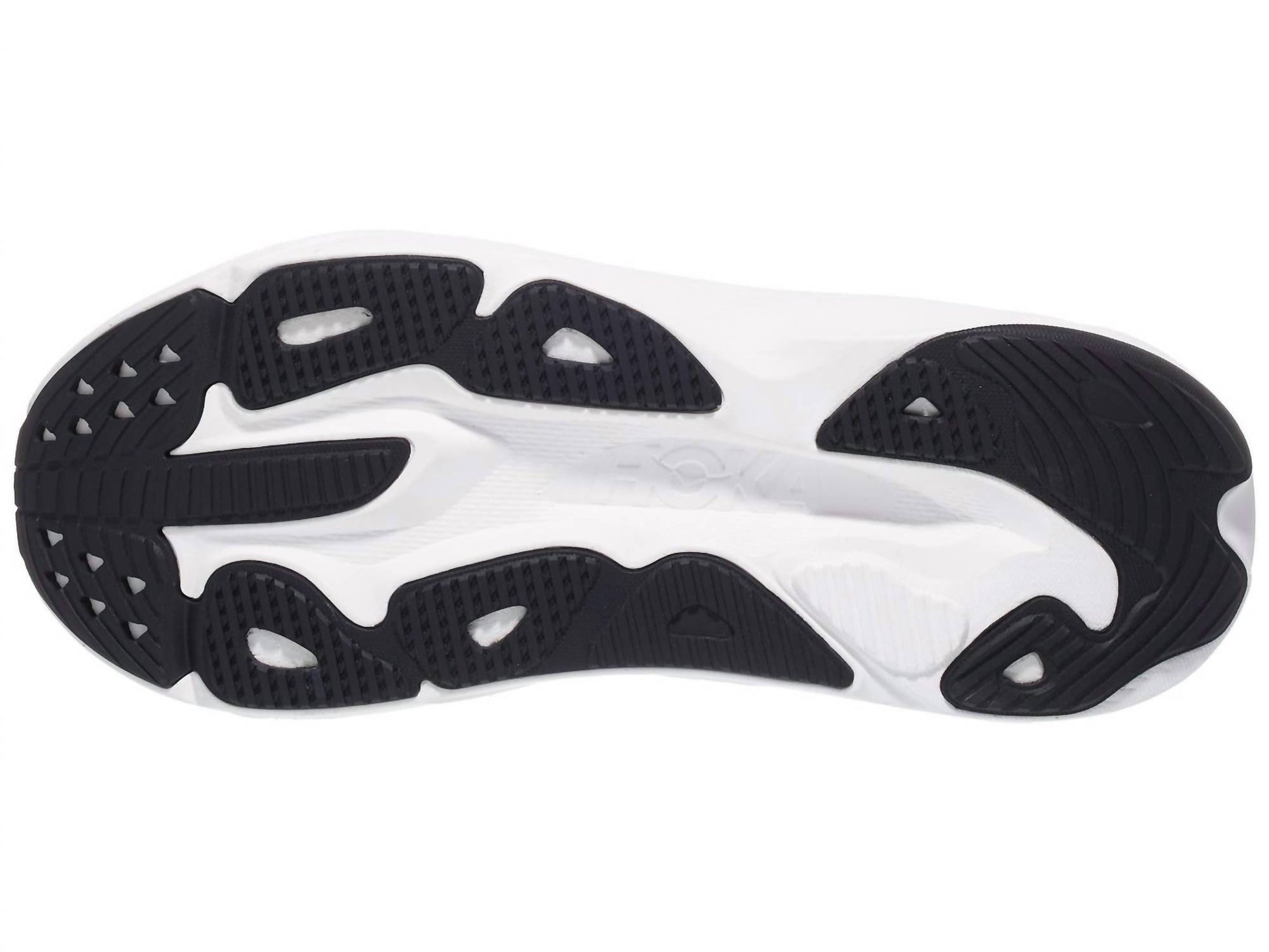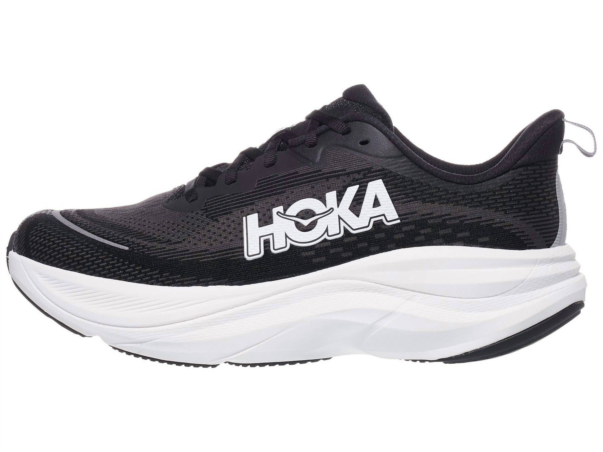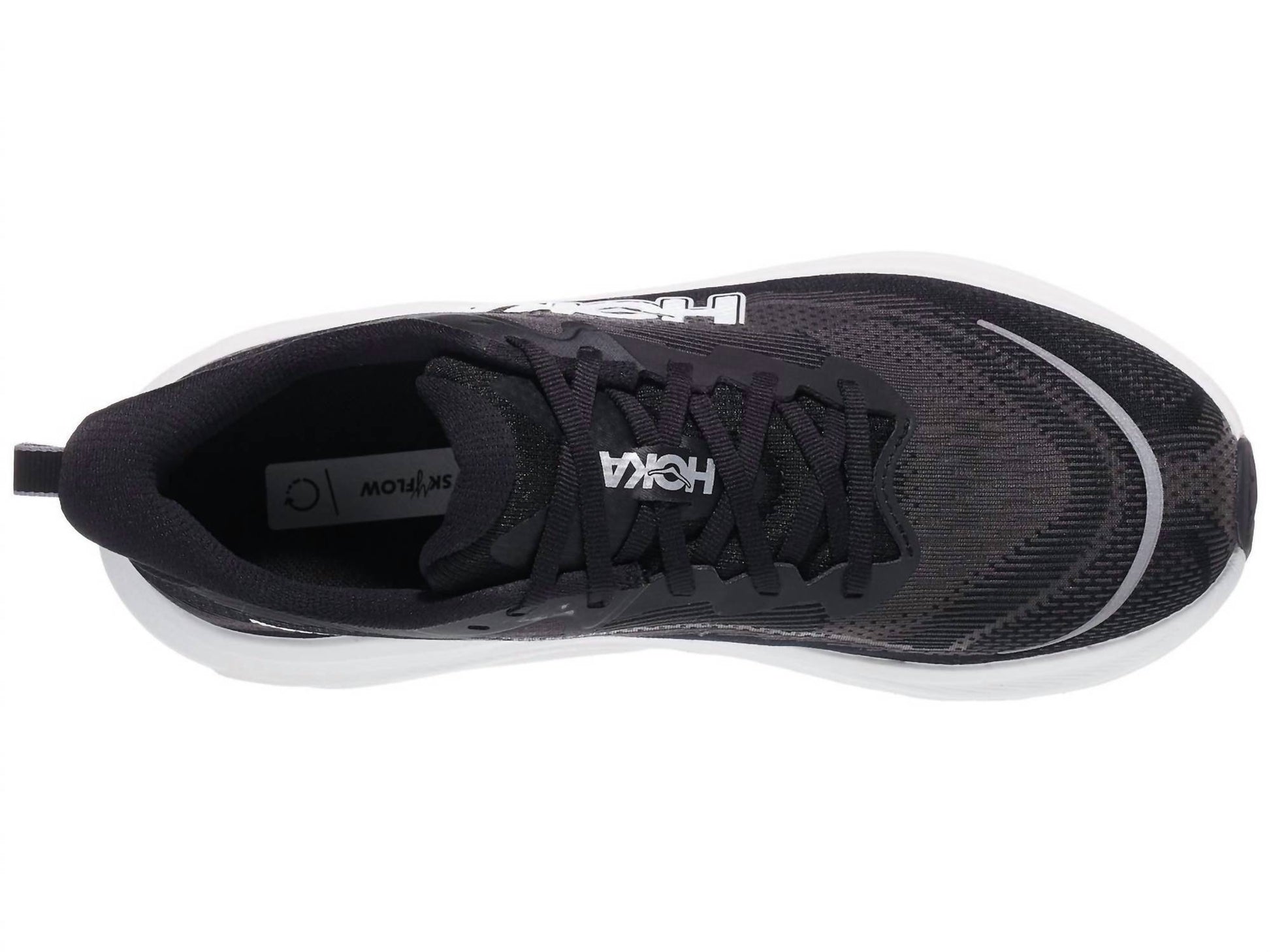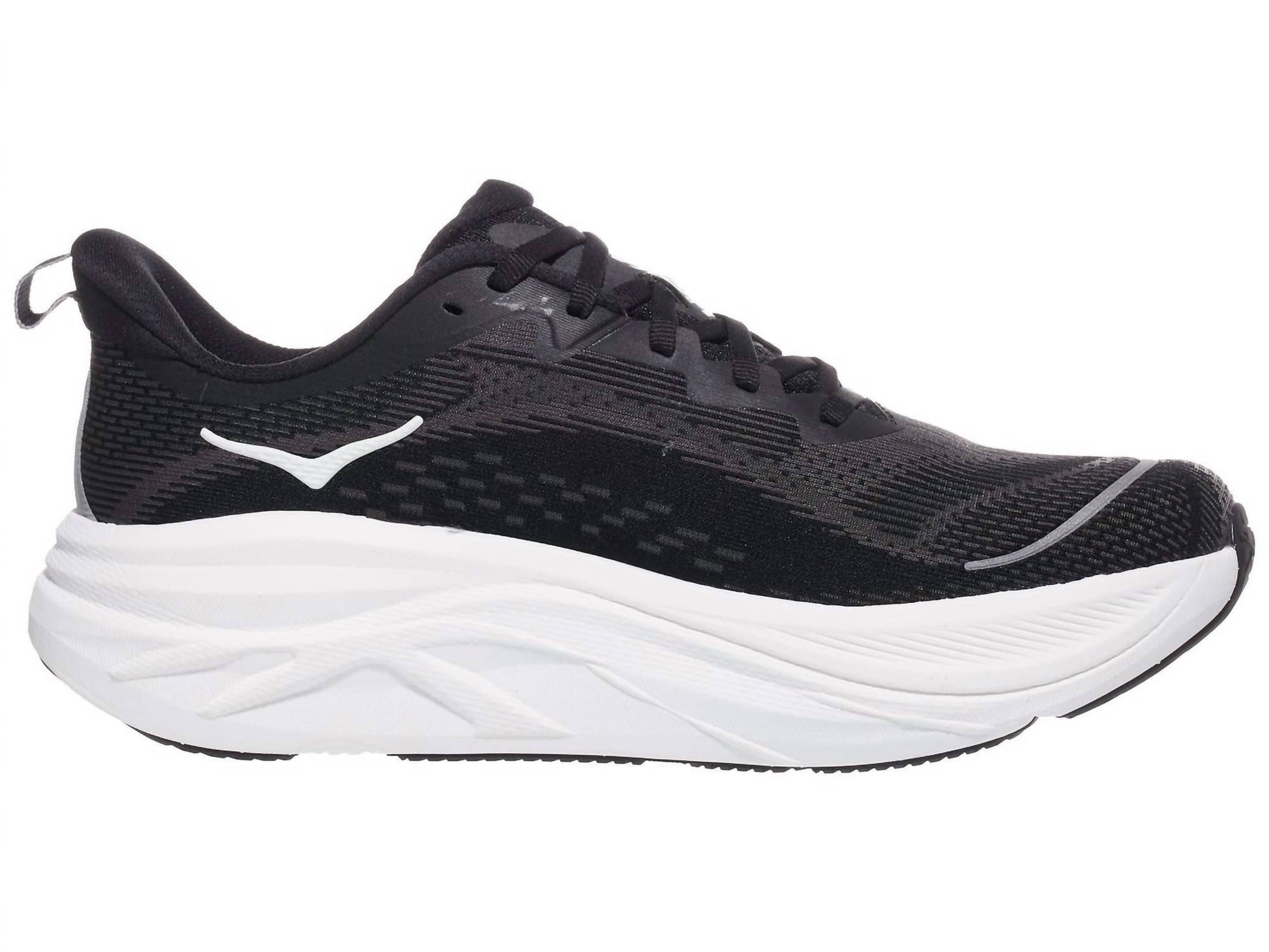 Introducing the Men's Skyflow by Hoka, a sleek pair of athletic shoes in classic black and white designed for fitness and workout occasions. Featuring a 40mm platform heel, these shoes provide both style and comfort during the winter season. Material: Rubber. Toe Shape: Round Toe. Ideal for New Year's Eve athleisure celebrations.