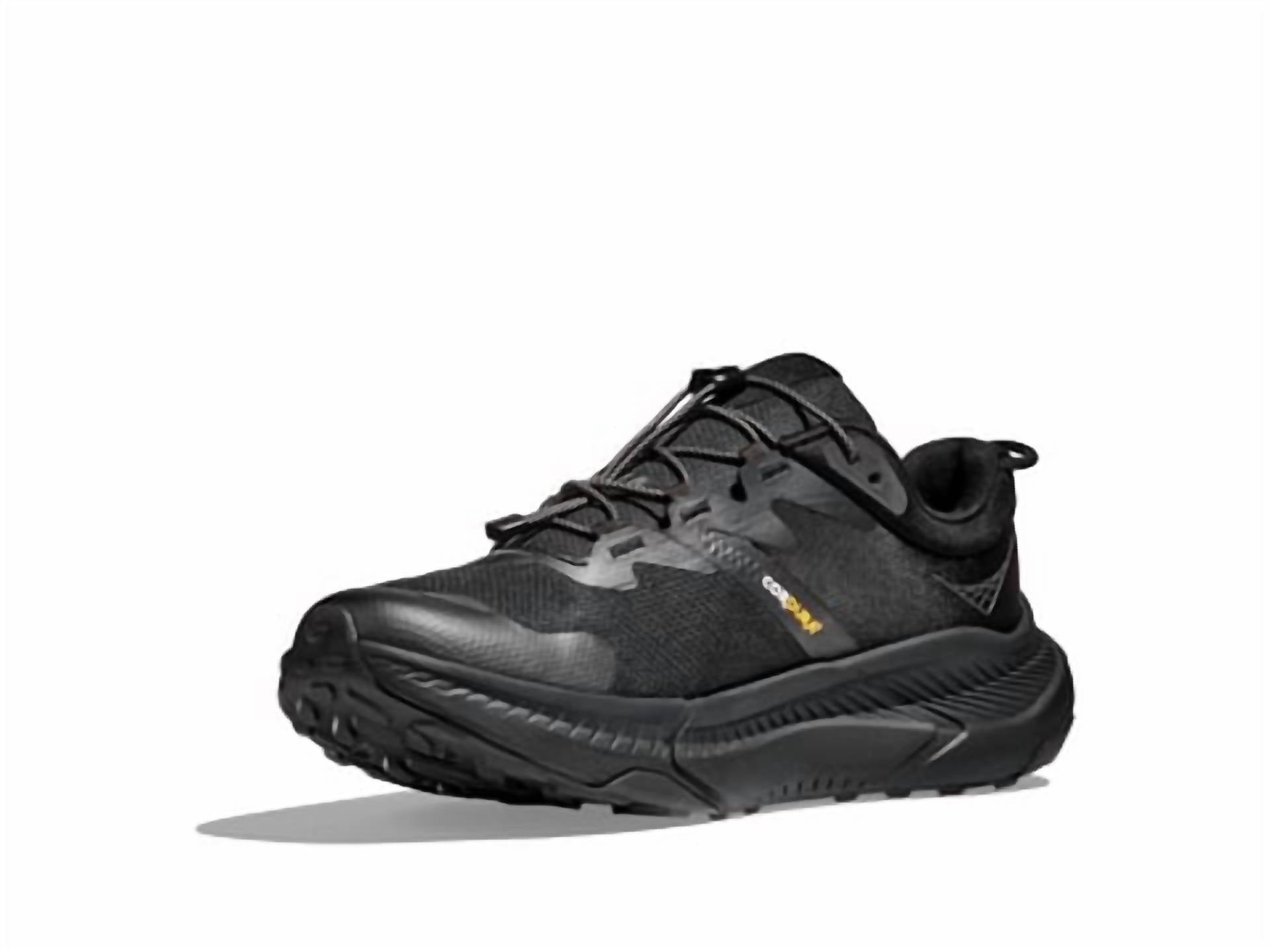 Introducing the Hoka Men's Transport Sneakers, crafted for those who navigate both the city and the trail with ease. These sleek black sneakers feature Cordura® abrasion-resistant textile uppers and an innovative Quick-toggle lace closure for convenience. The eco-conscious design incorporates a 30% sugarcane EVA midsole and a Vibram® EcoStep Natural outsole, ensuring a sustainable footprint for any adventure. The shoe is further enhanced by 360-degree reflectivity and a PFC-free water repellency treatment, perfect for springtime urban explorations or Thanksgiving outings.