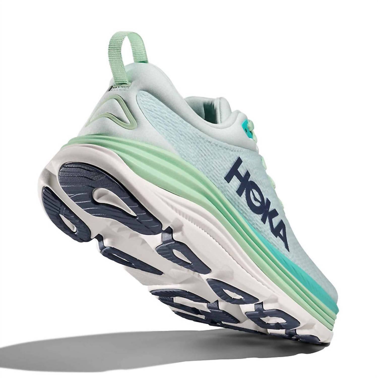 Get your daily steps in with these adorable sneakers. Elevate your daily runs and walks with the Women's Gaviota 5 Sneakers by Hoka, featuring a breathable creel jacquard mesh upper and plush tongue and collar for exceptional comfort. The innovative stabilizing H-Frame™ technology combined with soft EVA foam ensures your feet are supported without compromising cushioning. In a stylish Snow Melt Cielo Blue, these sneakers showcase early stage MetaRocker™ for a smooth stride, and are ideal for fitness and athleisure enthusiasts. The platform heel design in rubber puts a spring in your step, making these the perfect addition to your spring workout wardrobe.