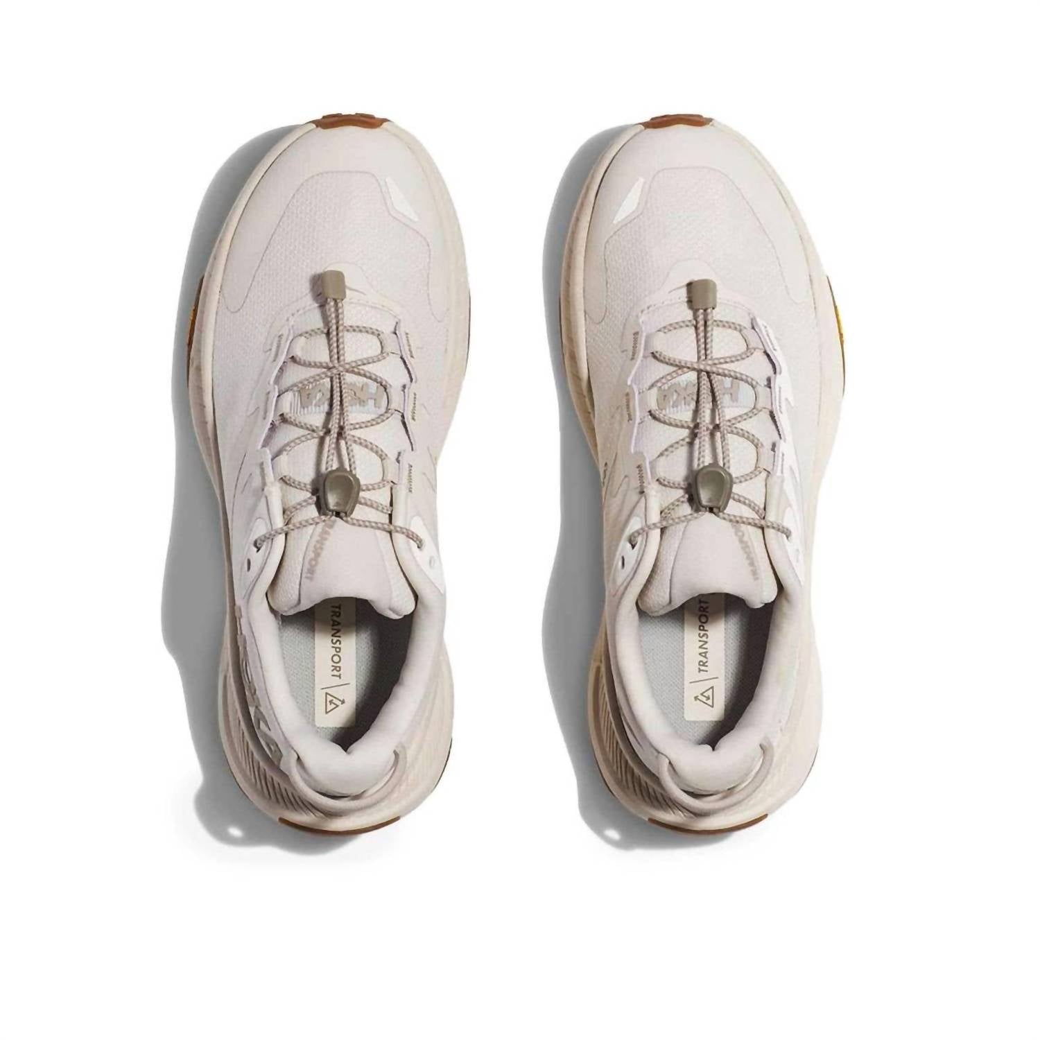 Cute, functional, and comfortable. These sneakers check all the boxes. Introducing the Women's Transport Sneakers by Hoka, a perfect blend of lifestyle and performance for the fitness enthusiast. Designed with a 30% sugarcane EVA midsole, these sneakers feature a Vibram® N-OIL outsole with 90% petrol-free components and durable Cordura® made from 100% rPET. The quick-toggle lace system ensures easy wear, while 360 degrees of reflectivity enhances visibility. Ideal for the athleisure trend, these Eggnog-colored sneakers are perfect for spring workouts and Thanksgiving gatherings.