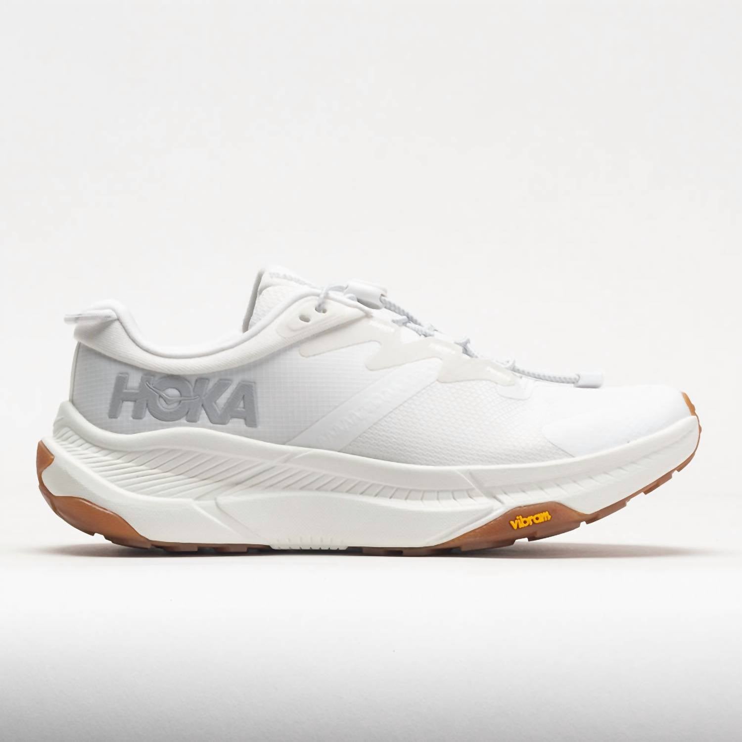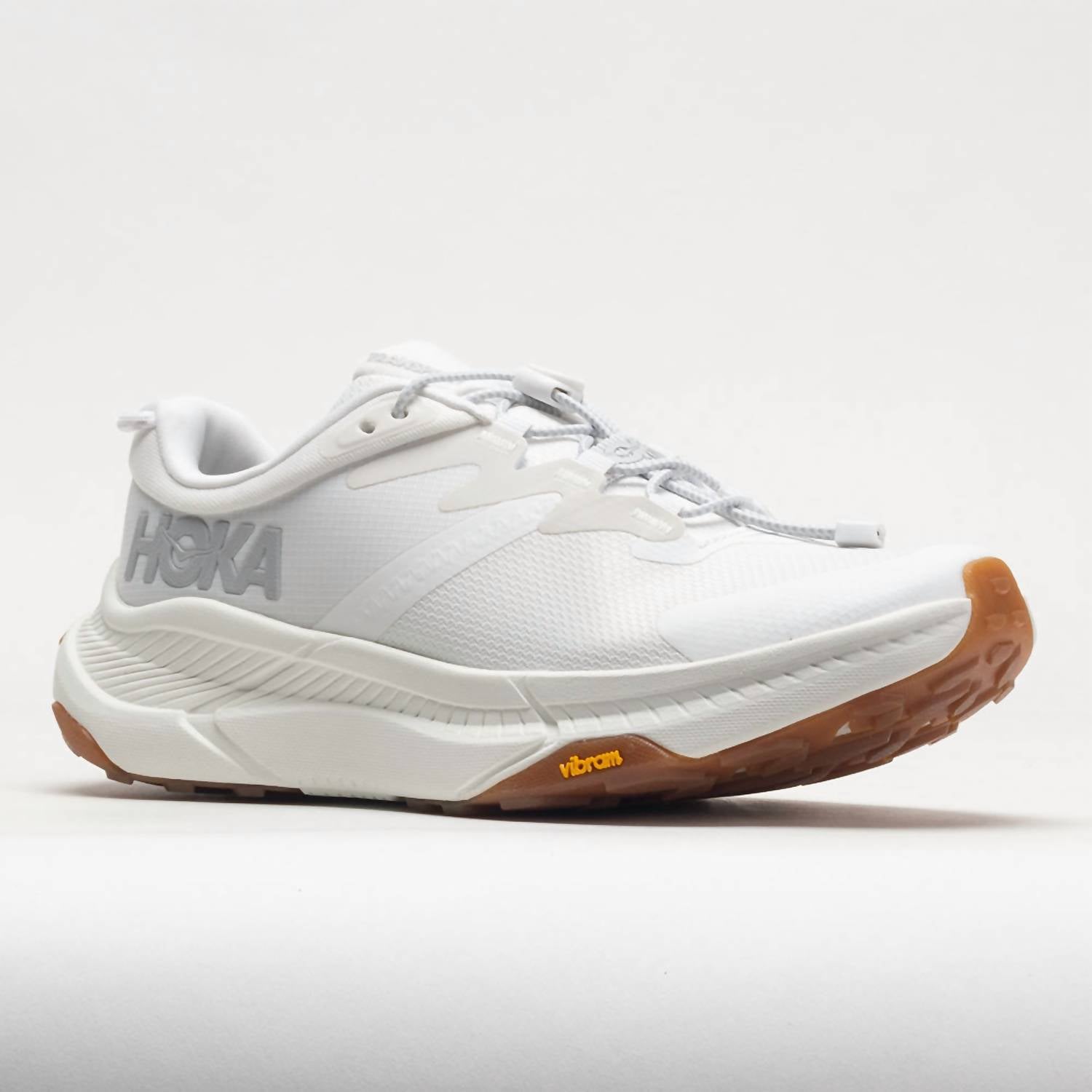 When fashion and function come together seamlessly. Elevate your commute with the Hoka Women's Transport Sneakers in pristine white, expertly crafted for city living. These lightweight sneakers feature a thoughtful blend of eco-friendly materials like a 30% sugarcane EVA midsole and a Vibram® EcoStep Natural outsole. The vegan upper incorporates recycled materials in the collar, mesh, and laces, ensuring both sustainability and durability. Designed for visibility and comfort, the shoes include quick-toggle laces and 360° reflective details, perfect for everyday adventures. Ideal for fitness and workout sessions in the spirit of athleisure, they are a stylish choice for the spring season and Thanksgiving holiday gatherings.