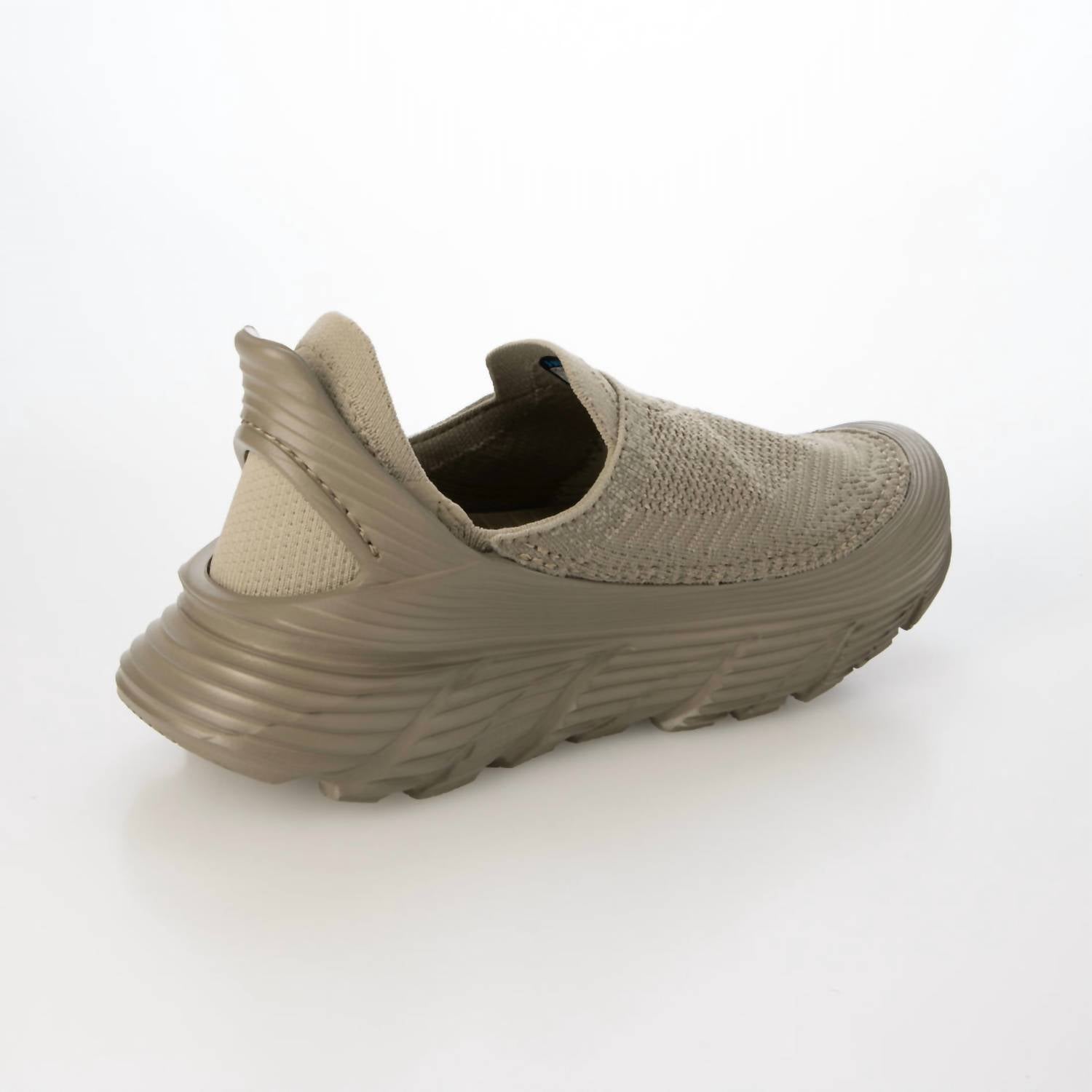 Stylish, comfortable and supportive. These athletic sneakers check all of the boxes. Step into comfort with the Women's U Restore Tc Shoes by Hoka, a perfect blend of style and functionality in Dune/Oxford Tan. Designed for active women, these athletic shoes feature a round toe and a chunky low heel ranging from 1 1/4" to 2", ideal for fitness and workout sessions. Embrace the athleisure trend in the spring season with these versatile shoes made for both workout and everyday wear.
