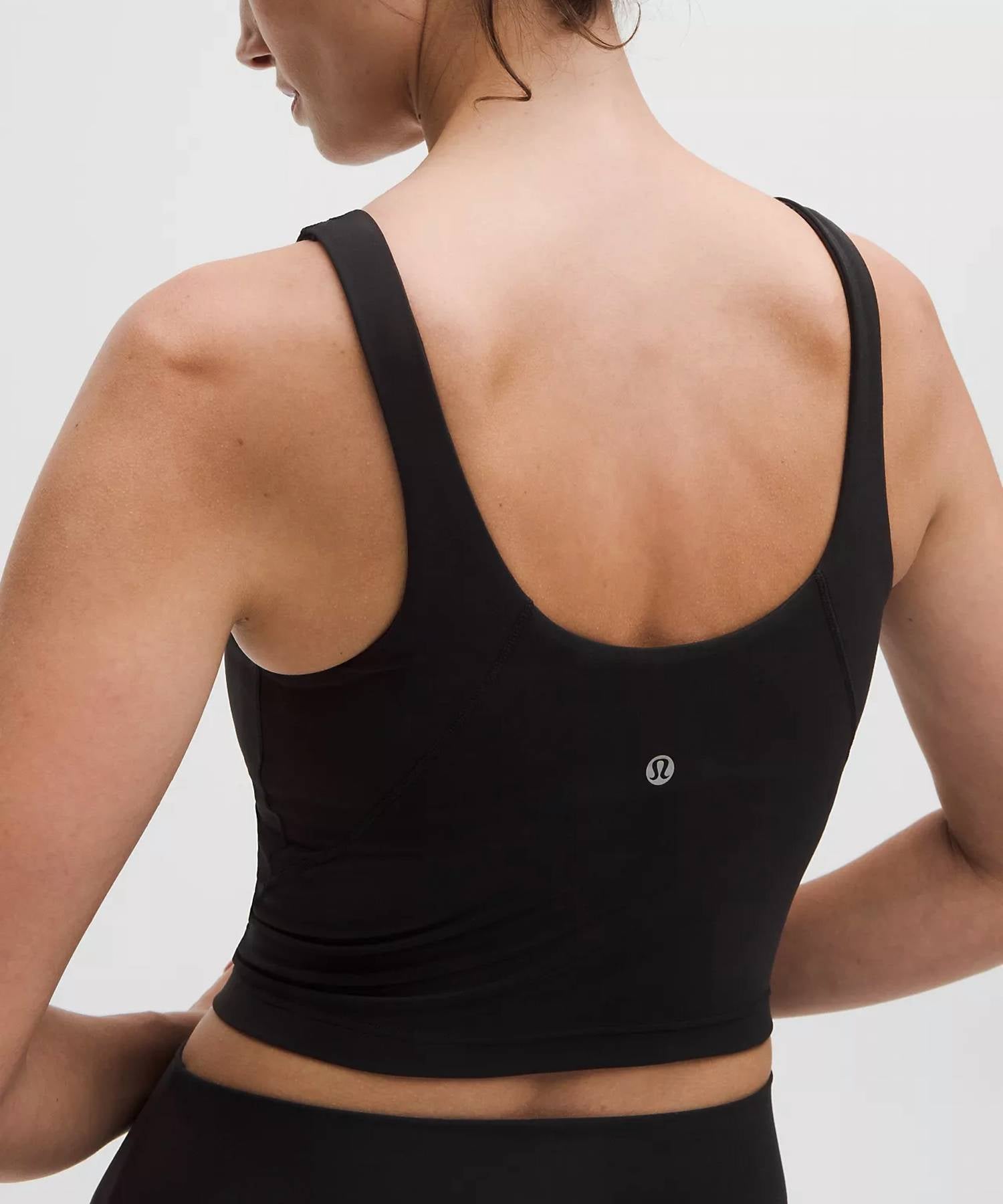 This classic tank top is perfect for layering and cute enough to wear on its own. The Align Tank by lululemon is a minimalist and versatile addition to your activewear collection, perfect for fitness and workout occasions. This sleeveless tank is crafted from a comfortable nylon blend and features a flattering V-neck, offering a sleek silhouette in solid black. Designed for women, it comes in a convenient pull-on style. Care instructions are simple, allowing for machine wash and tumble dry for easy maintenance.