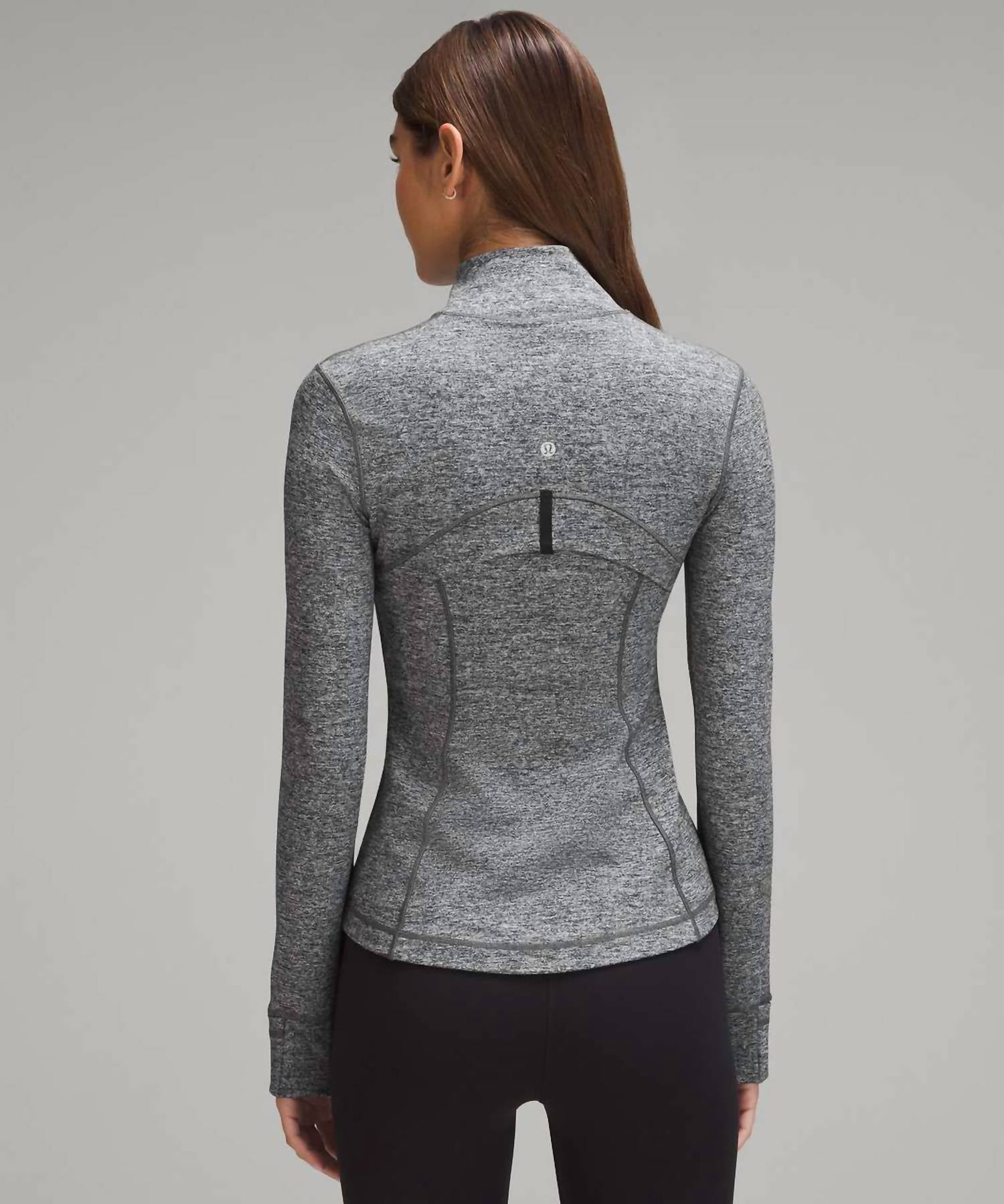 A jacket so versatile you can literally wear it with anything. The Define Luon Jacket by lululemon embodies minimalist elegance in a heather black hue, perfect for fitness and workout sessions. Long sleeves and a flattering V-neckline enhance its casual yet functional look. The jacket features a convenient zip closure and pockets, ensuring practicality for every workout. Its solid pattern and simplistic design make it an ideal summer staple.