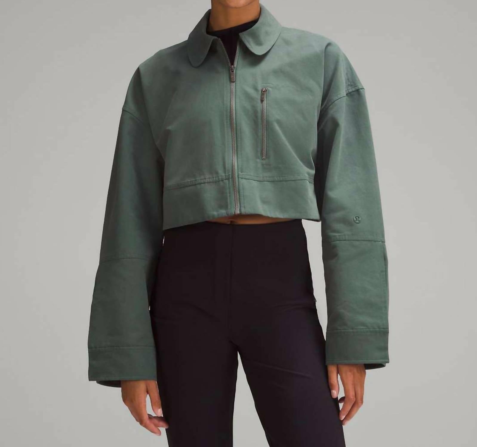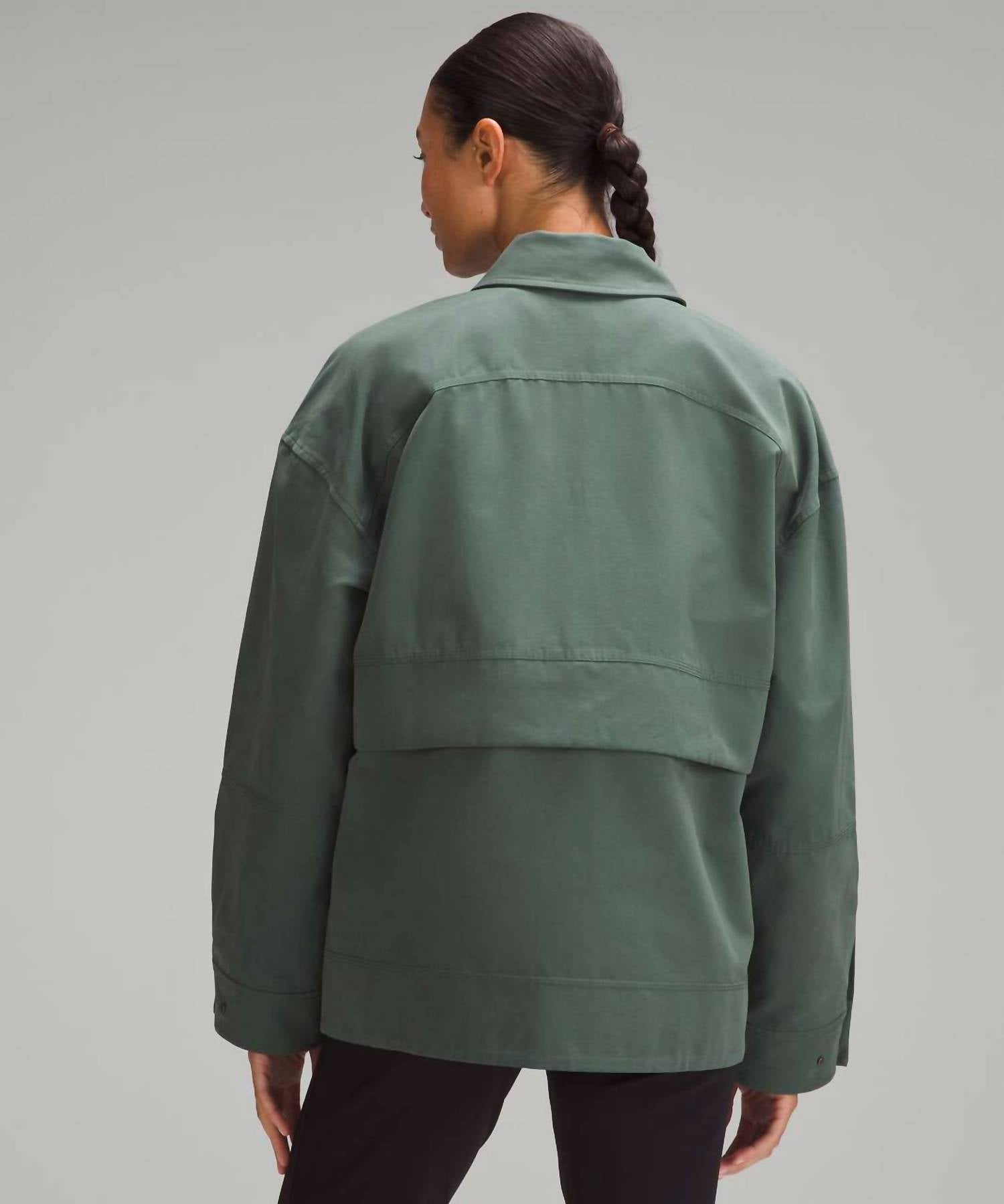This utility jacket is the perfect combination of cool and feminine. This soft jacket combines element protection with versatile style. Crafted from structured, heavyweight twill, it’s windproof and water-resistant. Practical features include a zippered chest pocket, drop-in cargo pockets with a hidden card sleeve on the removable bottom panel, and snap-adjustable cuffs that let you switch sleeves from straight to tapered.