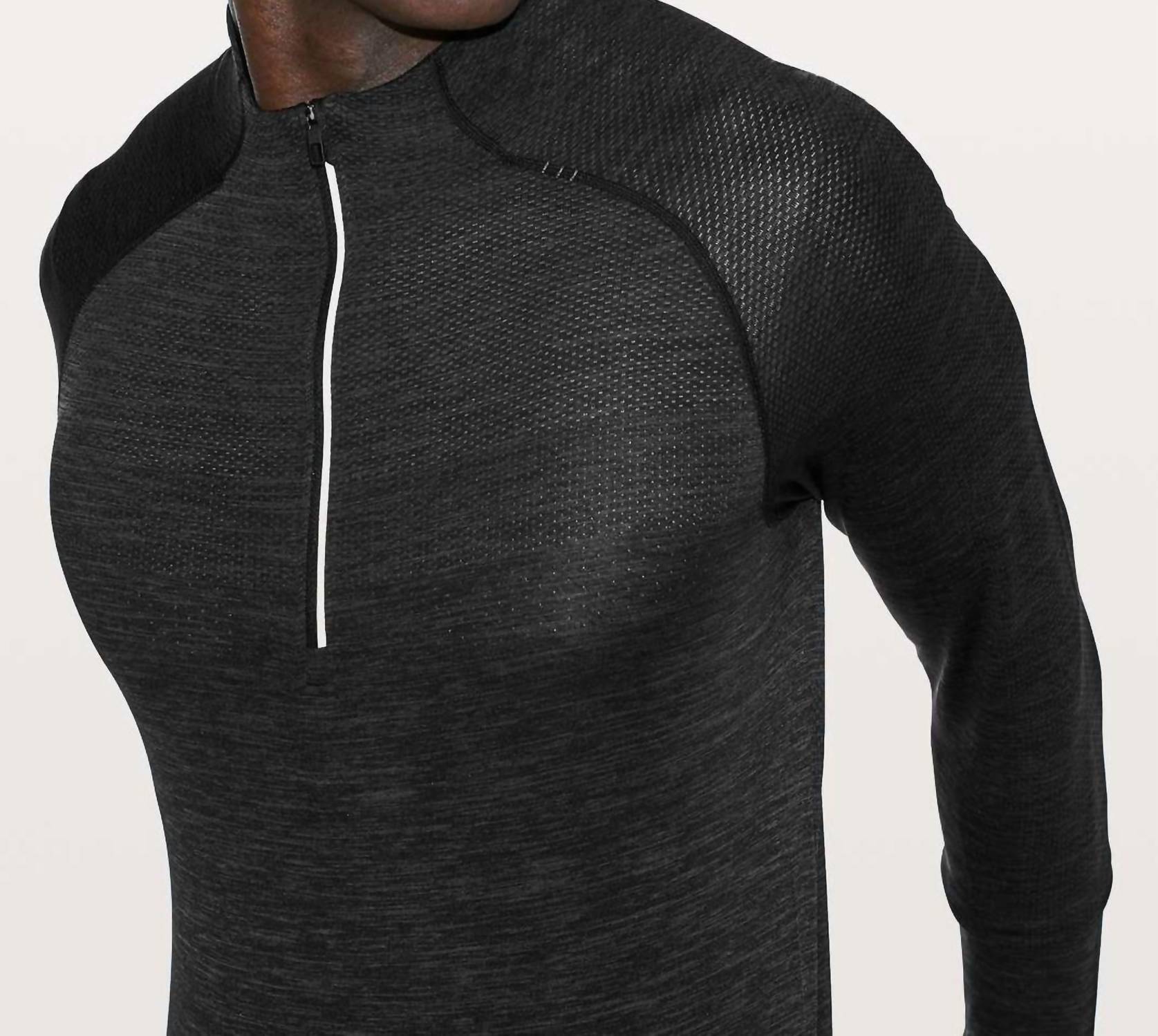 The Metal Vent Tech Half Zip 2.0 Sweater by lululemon is designed for men seeking a blend of function and style. Crafted from a nylon blend, this dark coal and black long sleeve top is perfect for athleisure and fitness pursuits. Featuring a practical zip closure with a solid pattern and a crewneck, it offers seamless transitions from workout to casual settings. Care is straightforward with machine wash and tumble dry instructions, ensuring effortless maintenance.