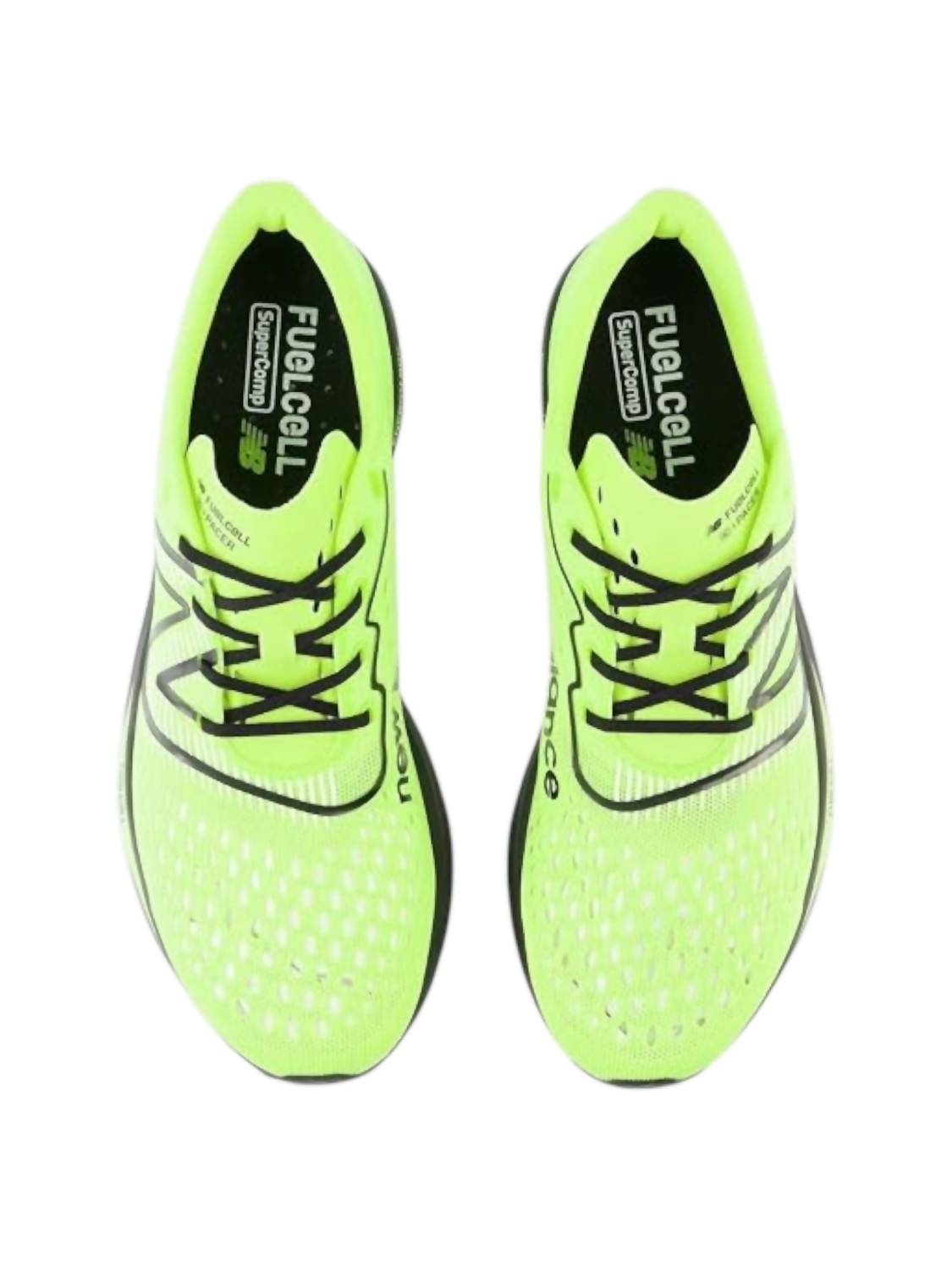 Step up your running game with the Men's Supercomp Pacer Shoes by New Balance, featuring FuelCell foam for a propulsive feel that propels each stride forward. Crafted with a synthetic engineered mesh upper, these shoes offer breathability and a lightweight sensation, essential for athletic performance. They boast a sleek tongue construction and a thinner collar for optimal heel lockdown. The advanced Energy Arc technology combines innovative carbon fiber plate geometry with strategic midsole voids, maximizing energy return with every step. Ideal for the modern athlete.