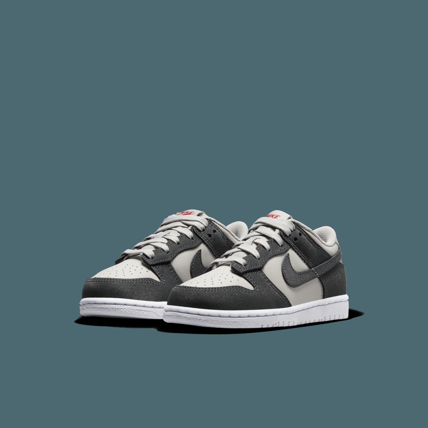 The Nike Kids Dunk Low HF “Iron Ore” brings the classic hoops icon to little feet with durable construction and timeless style. Crafted from a mix of real and synthetic leather for lasting wear, this kids’ sneaker features the signature padded collar, tongue, and toe perforations for an authentic Dunk look. A subtle shine in the accents adds just the right touch of sparkle, while the full-length rubber outsole with classic cupsole construction delivers reliable traction and support for all-day play. Perfect for everyday adventures, it’s a slam dunk in both comfort and style.