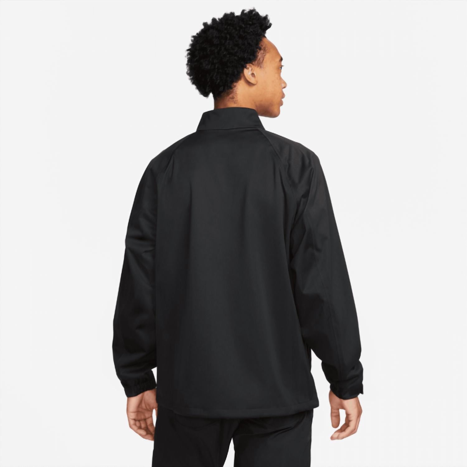 The Men's Full Zip Golf Jacket by NIKE is a sleek and stylish choice for the modern golfer. Crafted with long sleeves and a mockneck, this solid black jacket offers a contemporary look perfect for spring vacations. Its lightweight design features a convenient zip closure, ensuring easy wear and a comfortable fit.