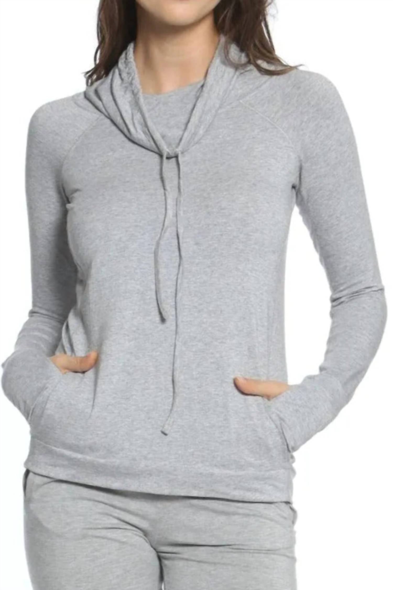 Layer under your favorite sweater or wear tucked into jeans for a perfectly polished winter look. Embrace comfort and style with the Laguna Cowl Neck Pullover Top by Twelve Eighty Eight, designed for a minimalist, fitness-ready look. This heather charcoal top features long sleeves, a loose-fitting cowl neck with drawstring detail, and a slightly fitted style, perfect for staying cozy during your workouts. Made from ultra-soft Peruvian Pima Cotton, Modal, and Lycra, it offers superior softness and flexibility. The top is pull-on style with an overall length of 25 inches and a sleeve length of 25 inches. Care: Machine wash to maintain its plush feel.