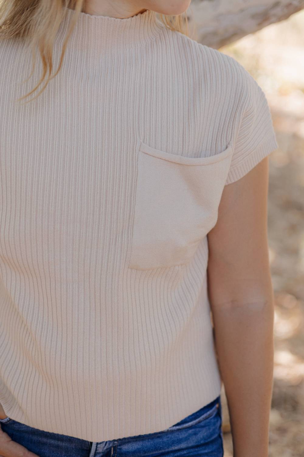 Layer under your favorite sweater or wear tucked into jeans for a perfectly polished winter look. Elevate your spring wardrobe with the Lindsey Mock Neck Sweater by Threaded Pear, crafted in a timeless beige hue. This full-length top features a textured pattern, cap sleeves, and a stylish mock neck for a sophisticated touch. With its very stretchy material, it offers a comfortable fit and easy movement, ideal for dinner parties during Thanksgiving or any occasion. Closure: Pull on. Jessie is wearing a size small.