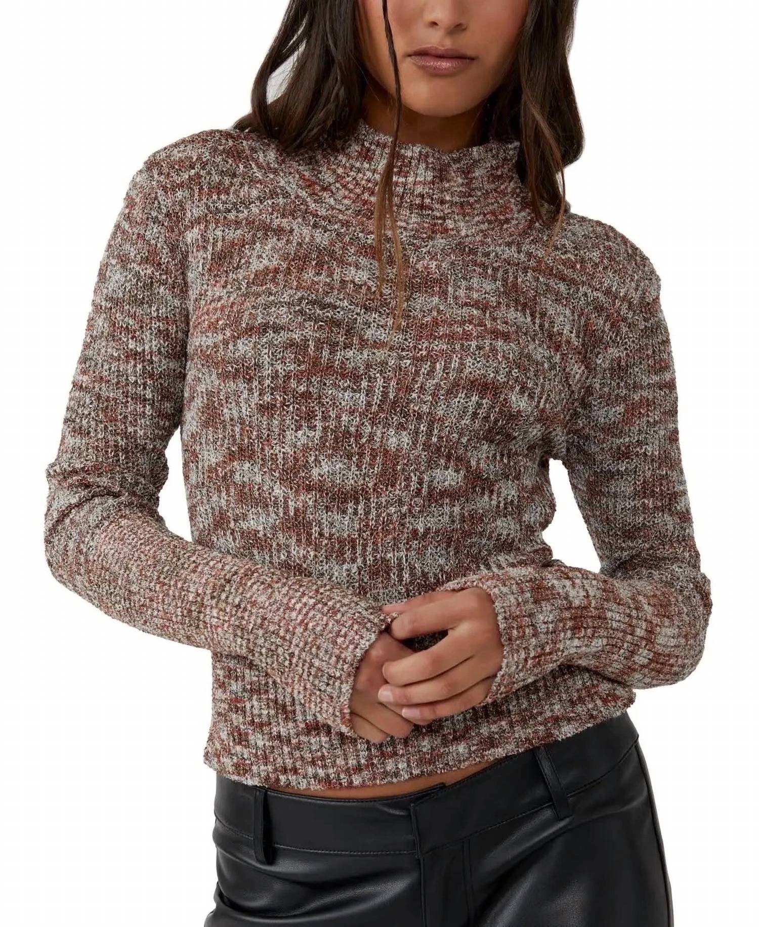 Layer under your favorite sweater or wear tucked into jeans for a perfectly polished winter look. The Blair Spacedye Pullover Sweater by Free People offers a unique blend of comfort and style with its colorful knit fabrication in a Black Coffee Combo. Featuring long sleeves and a high turtleneck for added shape, this sweater is crafted from a premium cotton blend composed of 24% Polyester, 35% Acrylic, 36% Cotton, and 5% Linen. Its staple pullover silhouette is accentuated by defined hemlines, making it an ideal choice for winter. Designed for effortless wear, it features a convenient pull-on closure and should be hand washed to maintain its textured appearance.