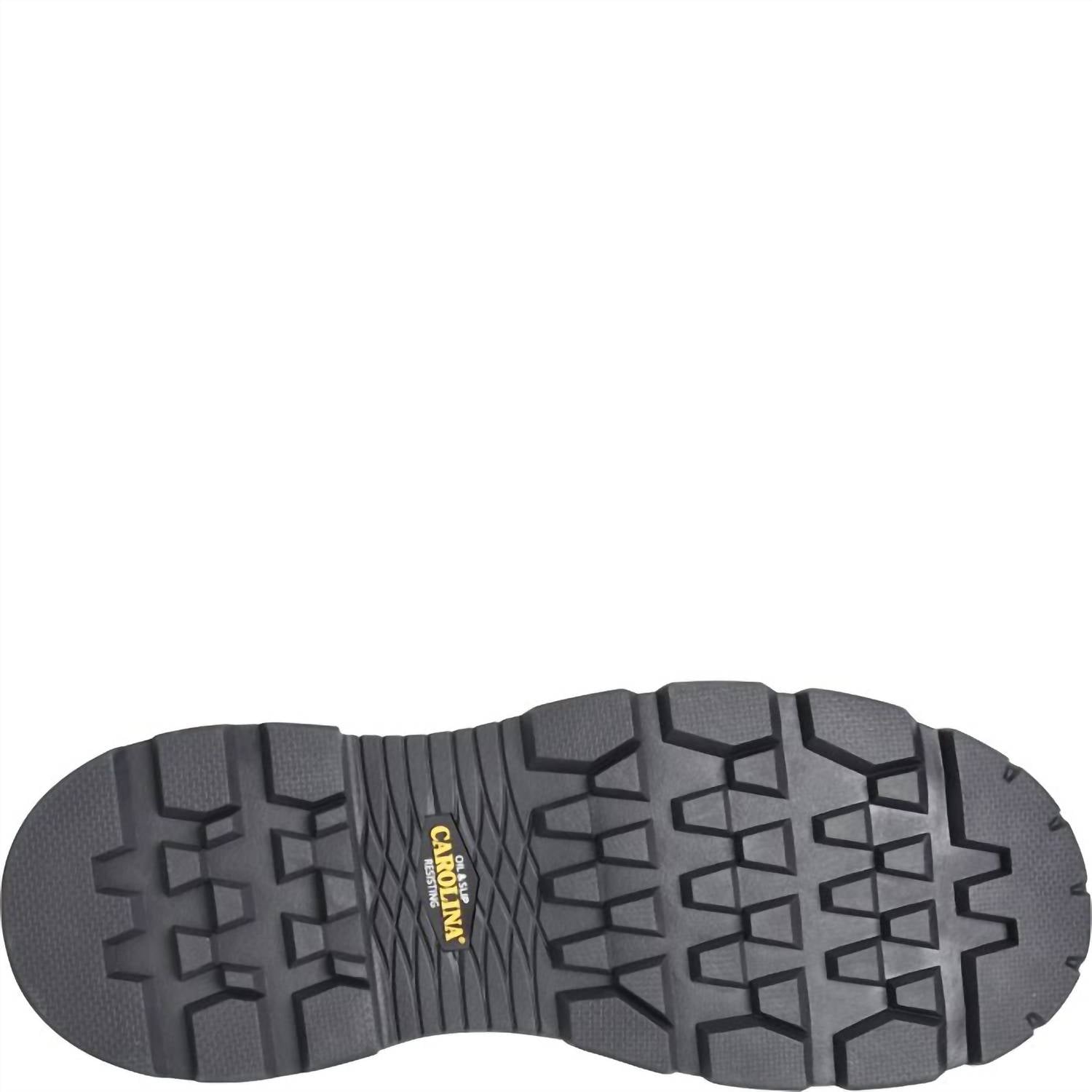 Introducing the Men's 8" Waterproof Composite Toe Work Boots by Carolina, designed to withstand harsh working conditions with ease. Crafted from Buggywhip Hazel Leather, these boots feature a composite safety toe cap and a waterproof SCUBALINER™ for unparalleled protection and comfort. Engineered with a triple-rib steel shank and oil & slip-resistant outsole, they also include a removable AG8 polyurethane dual-density foam footbed. Careful construction and added features like a TPU heel stabilizer make these boots ideal for demanding environments.