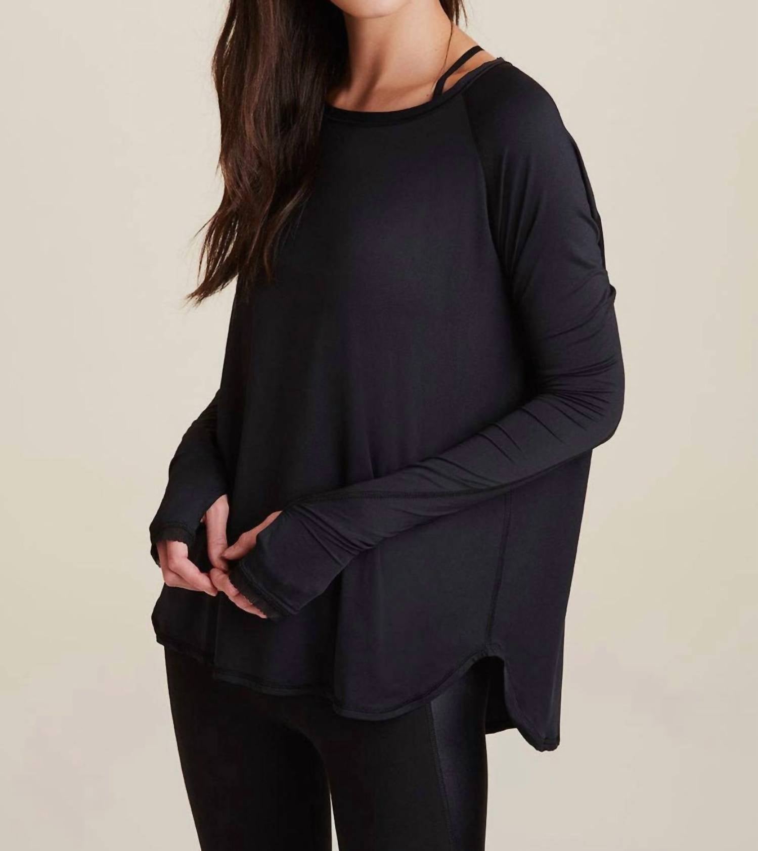 Boyfriend fit long sleeve raglan shirt with a back mesh accent. This women’s raglan shirt is streamlined through the arms with a roomy cut throughout the body. Thumbholes. Quick-drying ultra lightweight brushed fabric. 89% Tactel, 11% Spandex. Machine wash this white long sleeve raglan shirt cold with like colors only on gentle cycle. Tumble dry low or lay flat away from direct sunlight to dry. Kailey is 5' 11", 30" Bust, 24" Waist, 34" Hip, and is wearing size Small.