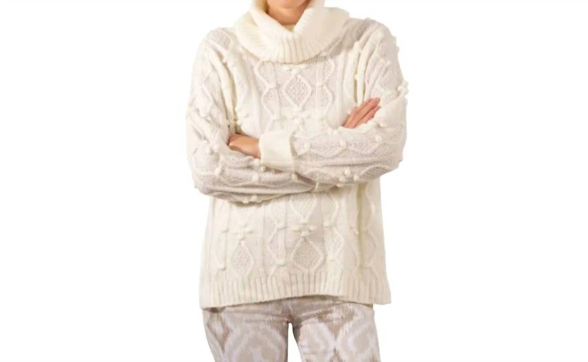Layer under your favorite sweater or wear tucked into jeans for a perfectly polished winter look. 26" Front 29" Back. Classic Aran Pattern with Popcorn & Cable Pattern. Cowl/Turtleneck. Long Sleeve with Set-In Cuff. High-Low Hem & Side Slits. 3” Ribbed Hem. Fabric Care: 100% Brushed Acrylic. Cold Gentle Wash / Hang to Dry
