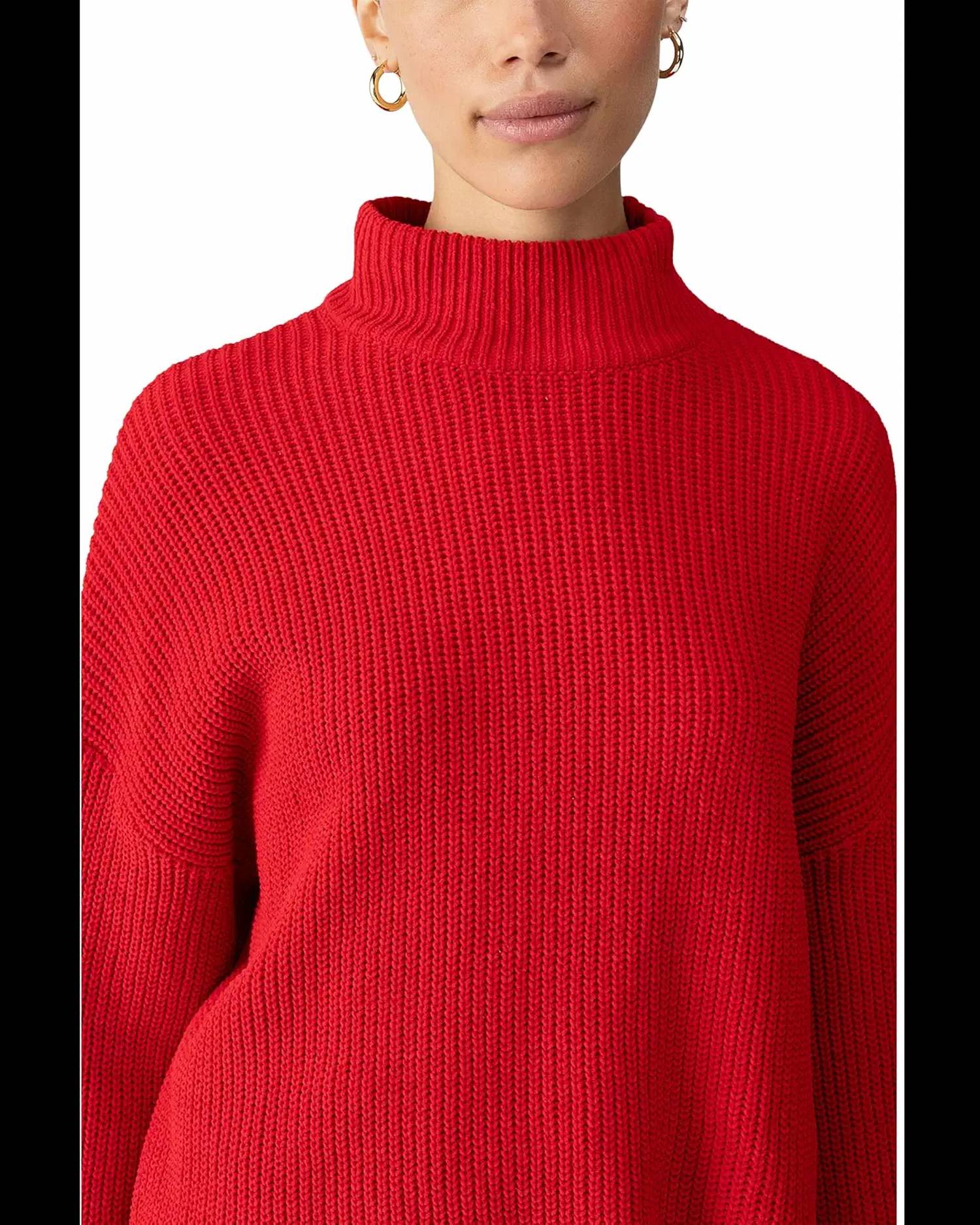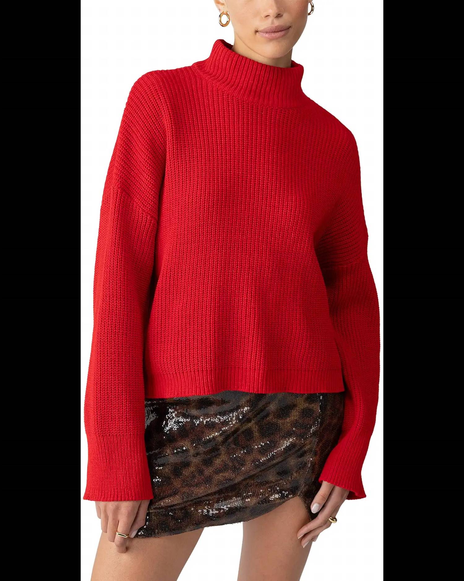 Layer under your favorite sweater or wear tucked into jeans for a perfectly polished winter look. Introducing the Stay Cozy Sweater by Sanctuary, a perfect blend of style and sustainability in vibrant red. This women's pullover features long sleeves and a flattering mock neckline accented with stylish stripe details on the cuffs and hem. Proudly crafted from 100% recycled polyester, it promises warmth with a minimalist design. Care: Hand wash only, line dry. Ideal for spring outings or a cozy dinner party, this sweater is the epitome of relaxed elegance.