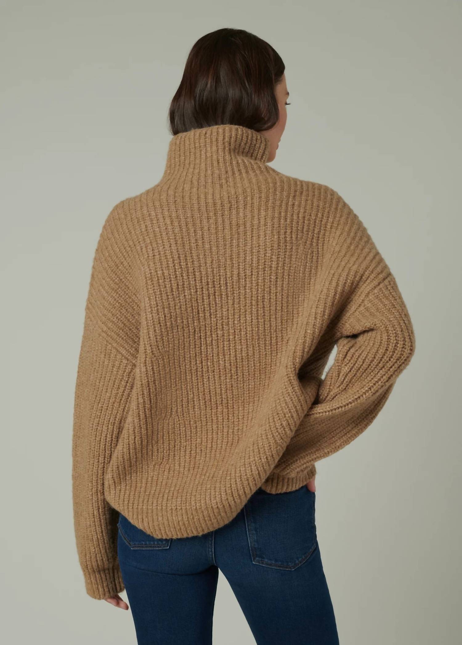 Fit to perfection and effortlessly chic. Experience cozy elegance with Joe's Jeans Toronto Oversized Sweater in a sophisticated oatmeal brown. The long sleeves and funnel neck create a stylish cocoon fit, enhanced by its chunky gauge knit. Crafted from a blend of 36% Nylon, 35% Acrylic, 26% Mercerized Cotton, and 3% Spandex, this textured sweater offers a luxurious feel and durability. Closure: Easily slip into this sweater with a pull-on style. Care: Machine wash and lay flat to dry to maintain its quality.