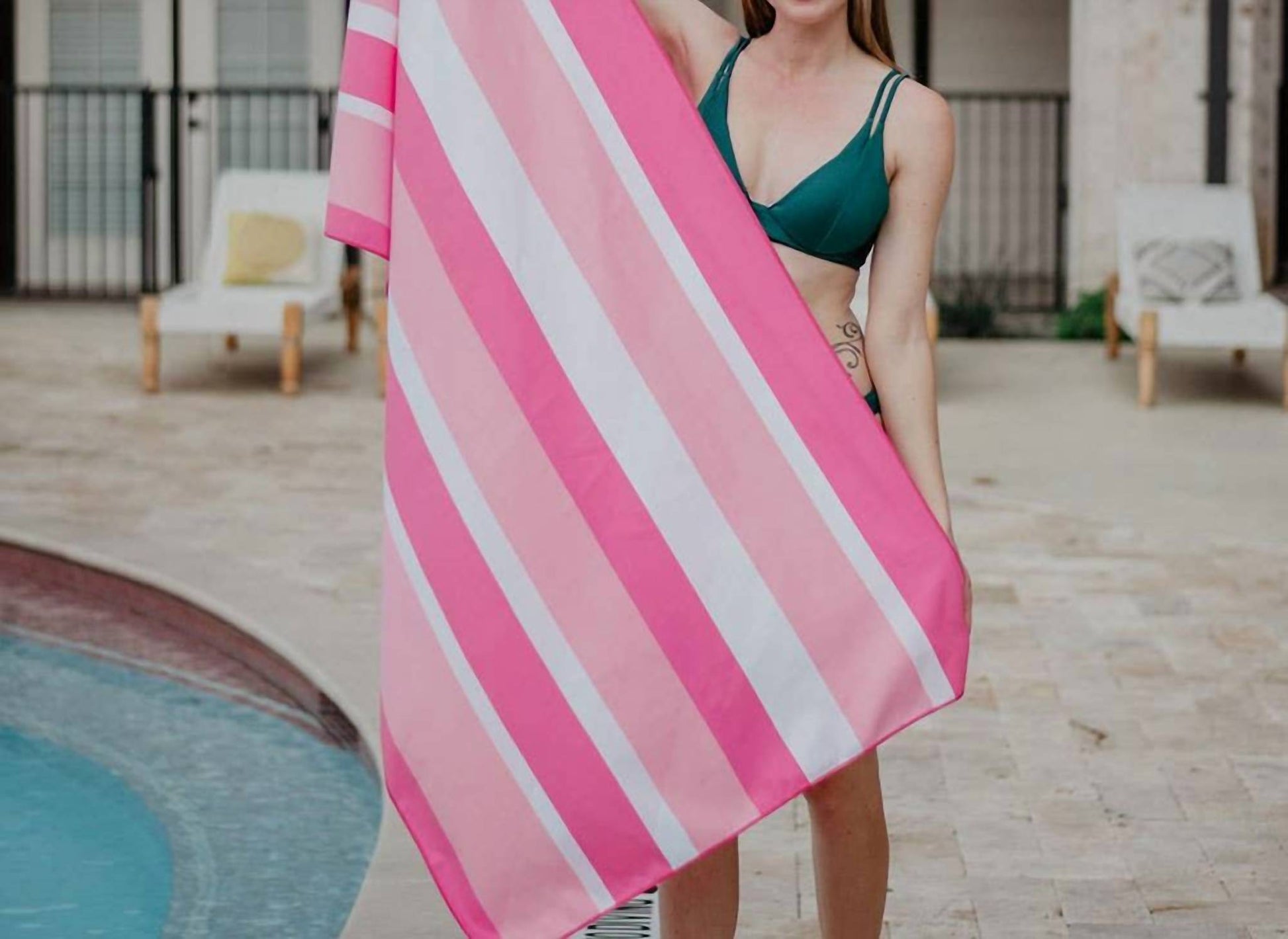 Chic, practical, and perfect for any getaway, the Pink Striped Beach Quick Dry Towel is made from 100% microfiber for a soft, sand-free, and fast-drying experience. Measuring 63” x 31”, this compact towel is ideal for the beach, pool, or travel and conveniently packs into a small carry pouch for easy portability. Designed for effortless care, it’s machine washable in cold or warm water and can be tumble dried on low or no heat—your must-have companion for sun-soaked days.