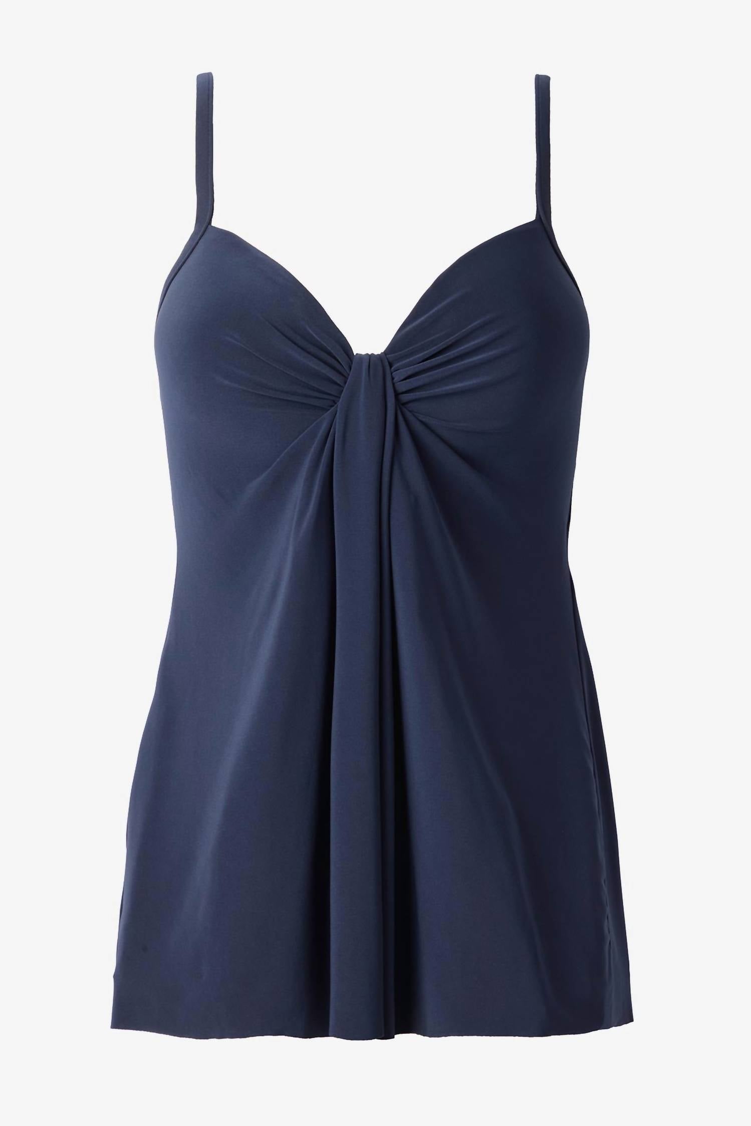 Dream of your next beach getaway in this cute little number. Pair with strappy sandals, a floppy hat, and an oversized tote to complete the perfect vacation look. Elevate your swimwear collection with the Miraclesuit Rock Solid Marina Underwire Tankini Top, designed to make you look 10 lbs lighter in 10 seconds. This women's tankini features adjustable straps, underwire molded cups, and a flattering sweetheart neckline with front draping to conceal the tummy. Constructed from 84% Nylon and 16% LYCRA® Spandex, it promises both comfort and style in a full straight back design. Care for your garment with a simple hand wash and line dry. Model is 5'10" and wearing a size 8.