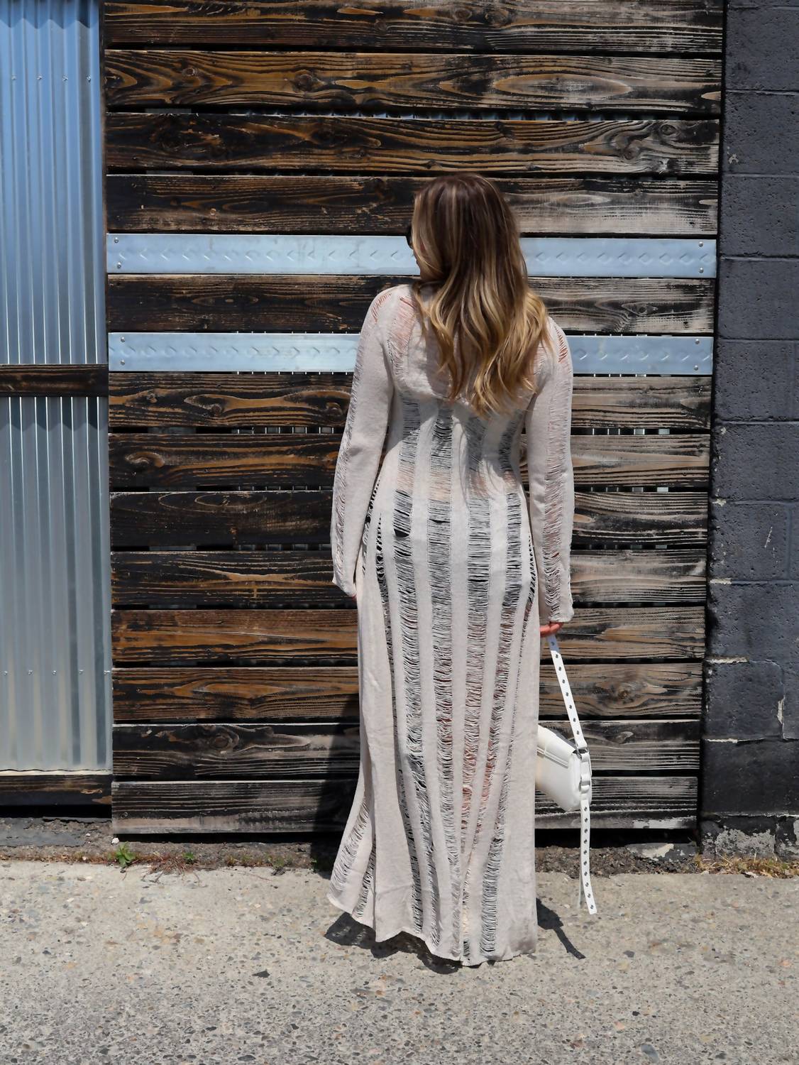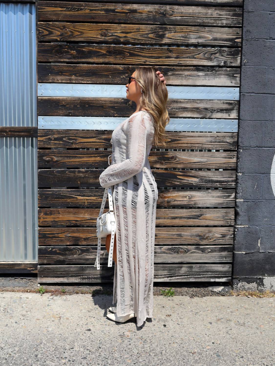 A comfy-all-day coverup that works just as good at dinner as it does by the pool. Elevate your summer style with the Desert Breeze Cover Up by TIC TOC. Featuring long fitted sleeves crafted from a lightweight and stretchy fabric, this full-length piece embraces a distressed ladder-knit design in a breathable semi-sheer acrylic and nylon blend. The versatile open front with adjustable tie closures ensures it layers perfectly over swimwear or festival ensembles. Available in off-white or black, this cover up is ideal for making a statement from beach to boardwalk.