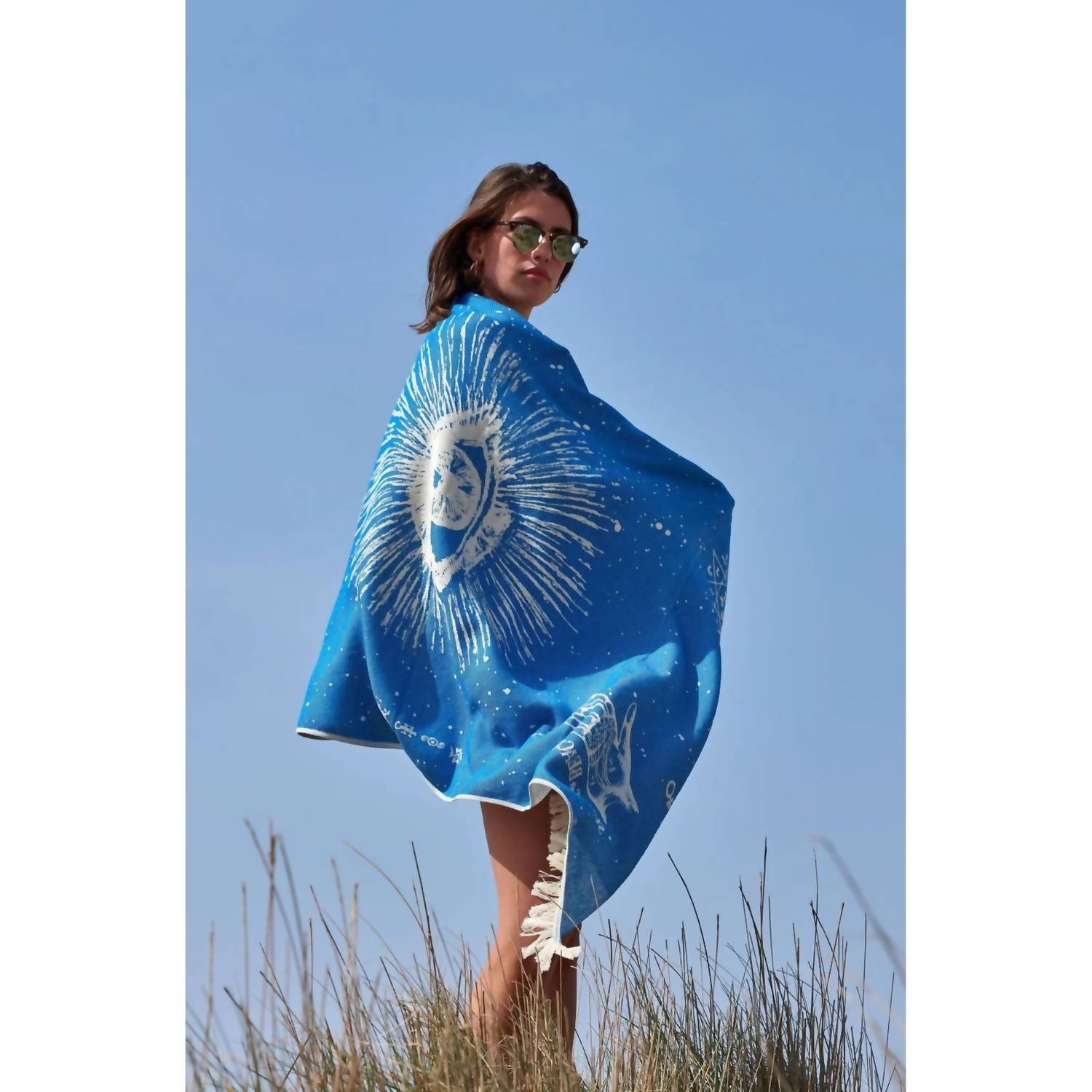 This Feather beach towel version of The Cosmos Eye design is just as out-of-this-world as the original. For the starman and starwoman who doesn’t want to be weighed down. Made in Greece from 100% cotton, it’s very absorbent and light as a feather, inspiring multiple uses on and off the beach. It can be used as a towel, a head wrap, a pareo, or even worn as a shawl after the sun sets. The only limit is your imagination! - Featherweight pareo towel - Can be used as a towel, pareo or shawl - Size: 95cm x 160cm - 30 degree machine wash