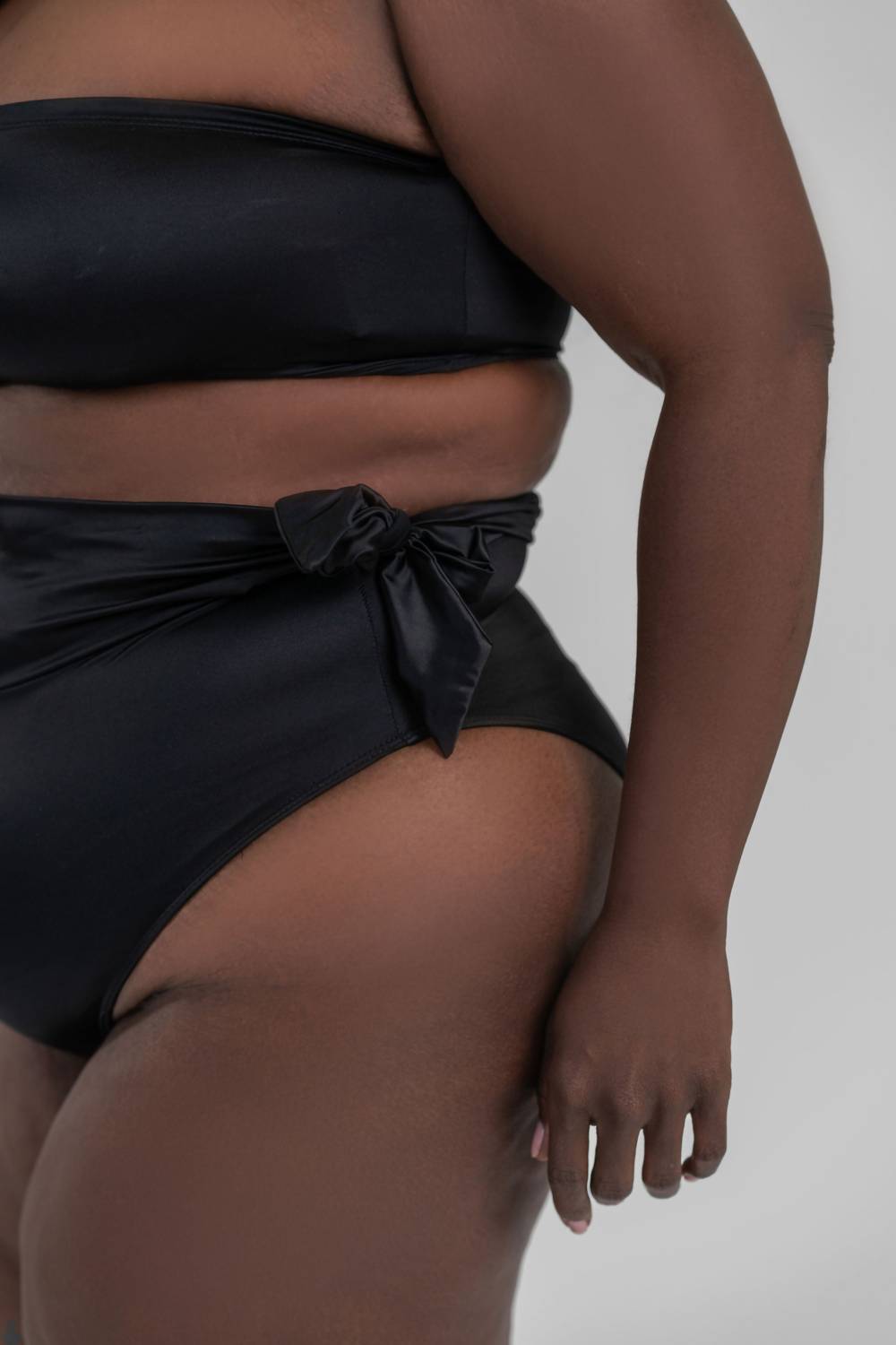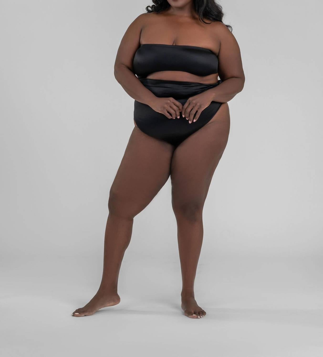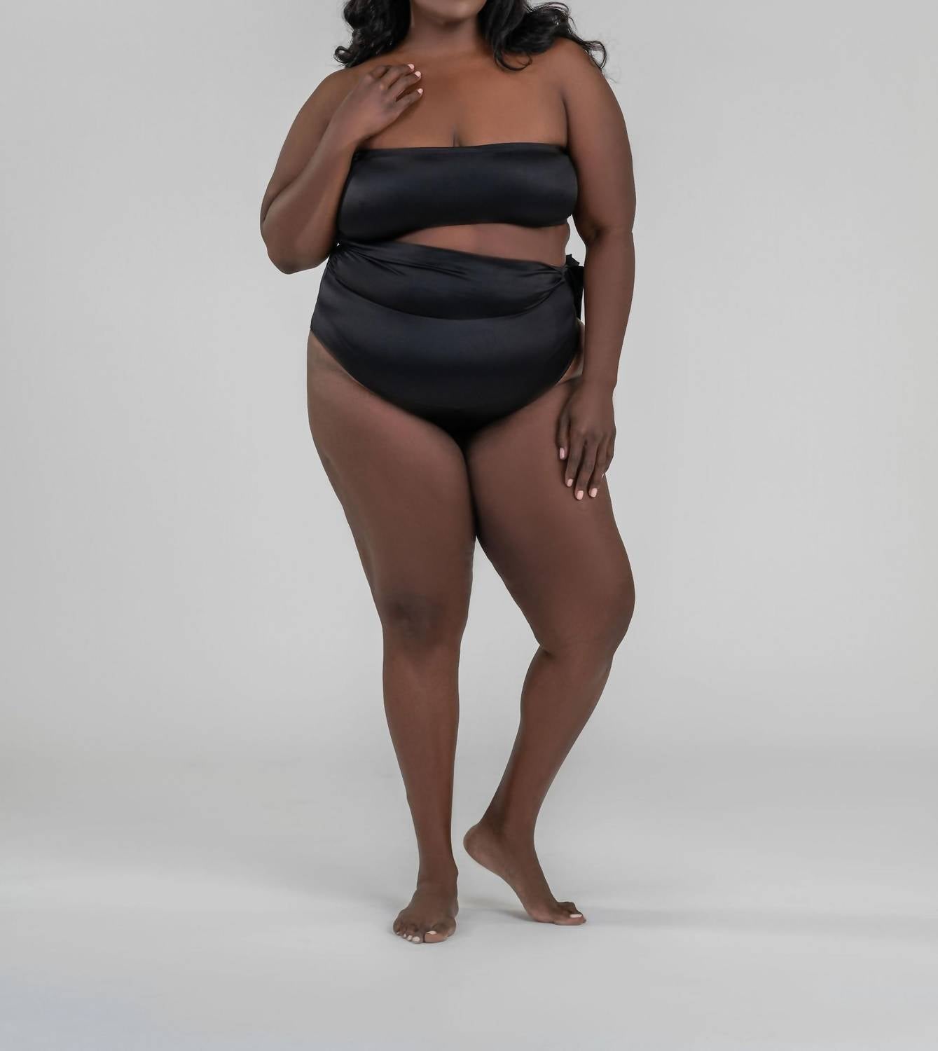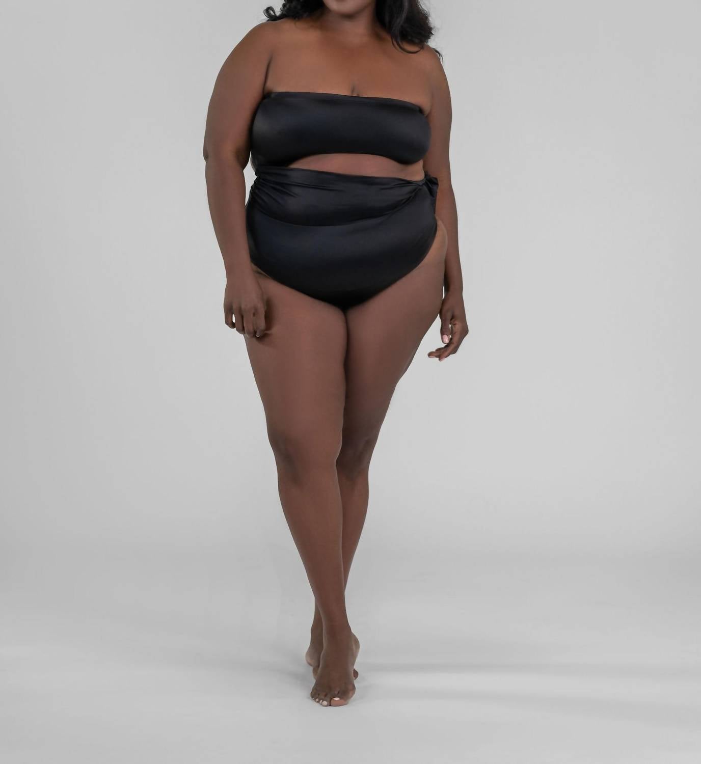 A one piece so chic you could even wear it as a bodysuit with your favorite pair of jeans. Introducing the Satin Side Tie Cut Out Swimsuit by Good American, a stylish one-piece crafted for those who love to make a statement. This strapless swimsuit features a chic side tie and flattering cut-out detail for a contemporary look. Made from soft and shiny satin, it offers full coverage and exudes a luxurious sheen in classic black. Perfect for any water occasion, this swimsuit will have you feeling confident all year long.