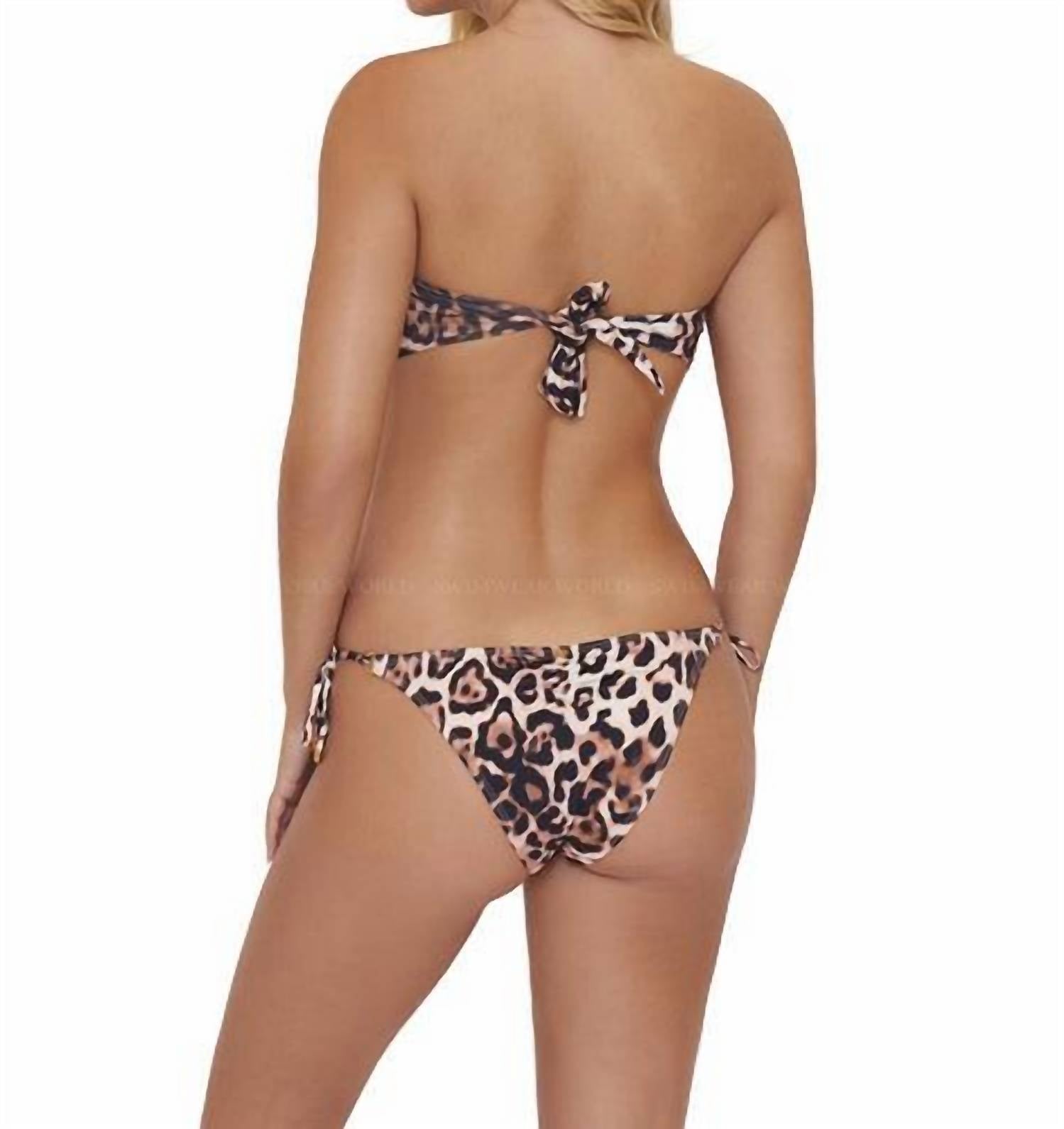 Ideal for relaxed poolside moments, this adorable swimsuit effortlessly transitions into the perfect sunset dinner outfit when paired with a flowing skirt. Elevate your summer swimwear collection with the Women's Teeny Tie Bikini Bottom by PQ Swim, featured in a bold Cougar Argyle print. Perfect for a day at the beach, this cheeky bikini bottom showcases a maximalist style with its playful design.